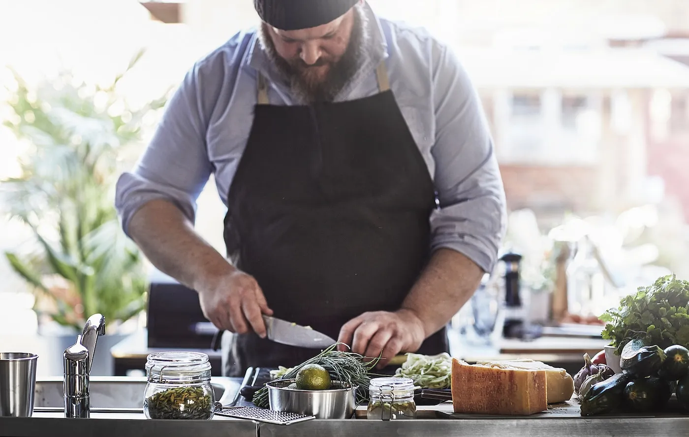 Этот кухонный остров предоставляет дополнительное место для хранения и удобную рабочую поверхность для подготовки продуктов перед жаркой.