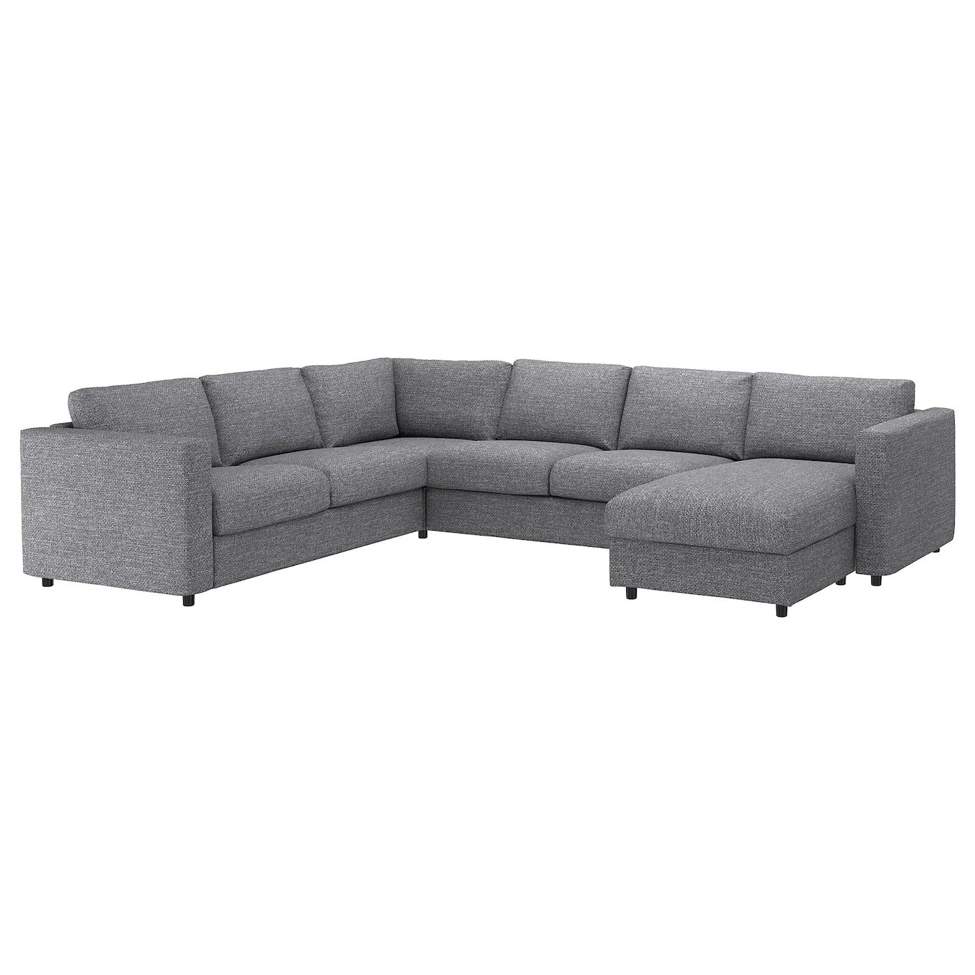 VIMLE, чехол для углового дивана-кровати, 5-местный, с шезлонгом/Lejde серый/черный