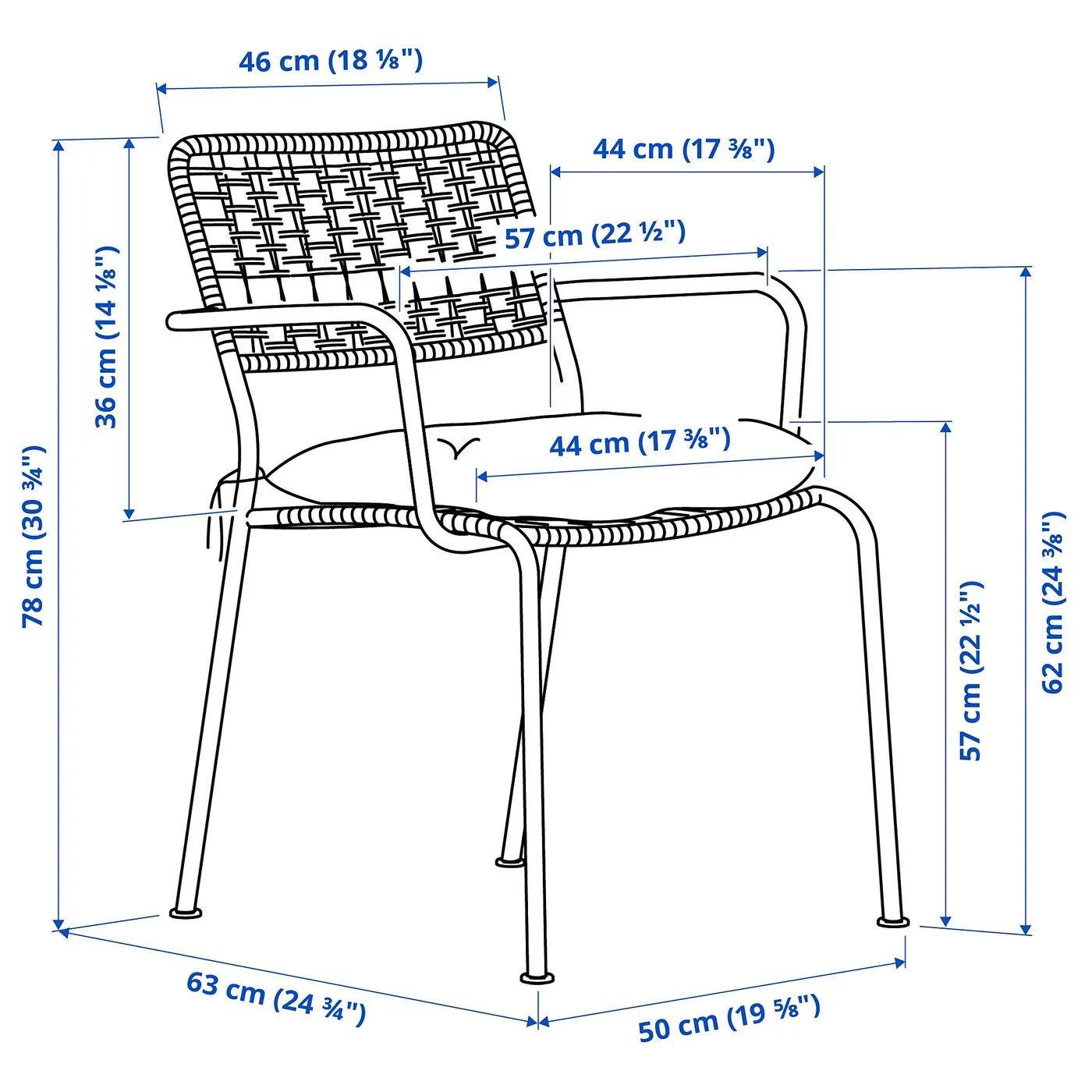 LÄCKÖ, кресло с подлокотниками для улицы, тёмно-серое/синее Klösan