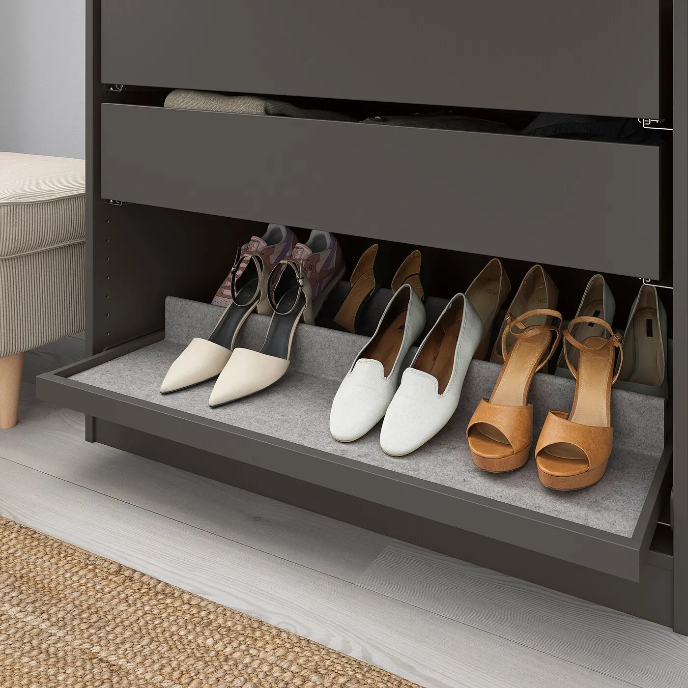 Будь то страсть к обуви, особая любовь к свитерам или украшениям и аксессуарам, внутренние организаторы KOMPLEMENT позволят максимально эффективно использовать пространство в вашем гардеробе.