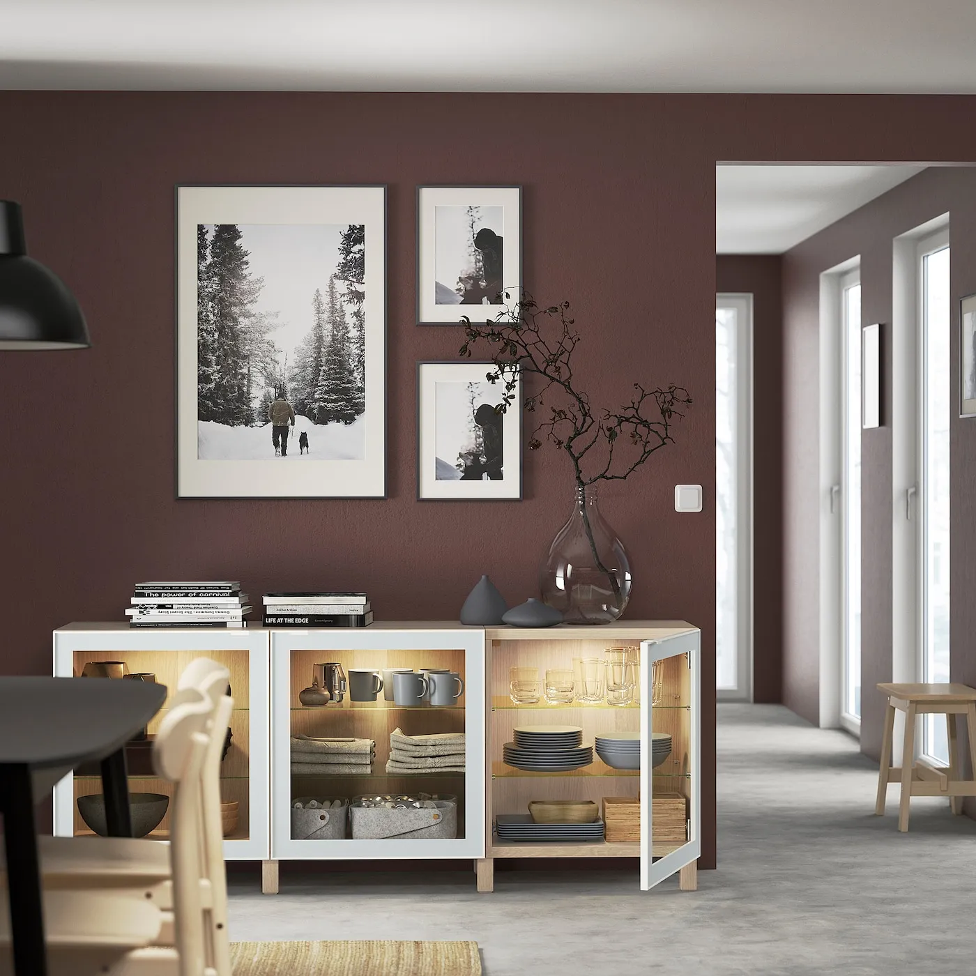 Эта комбинация состоит из нескольких отдельных элементов. Для создания единого облика используйте верхнюю панель BESTÅ, продается отдельно, чтобы скрыть стыки между рамами.
