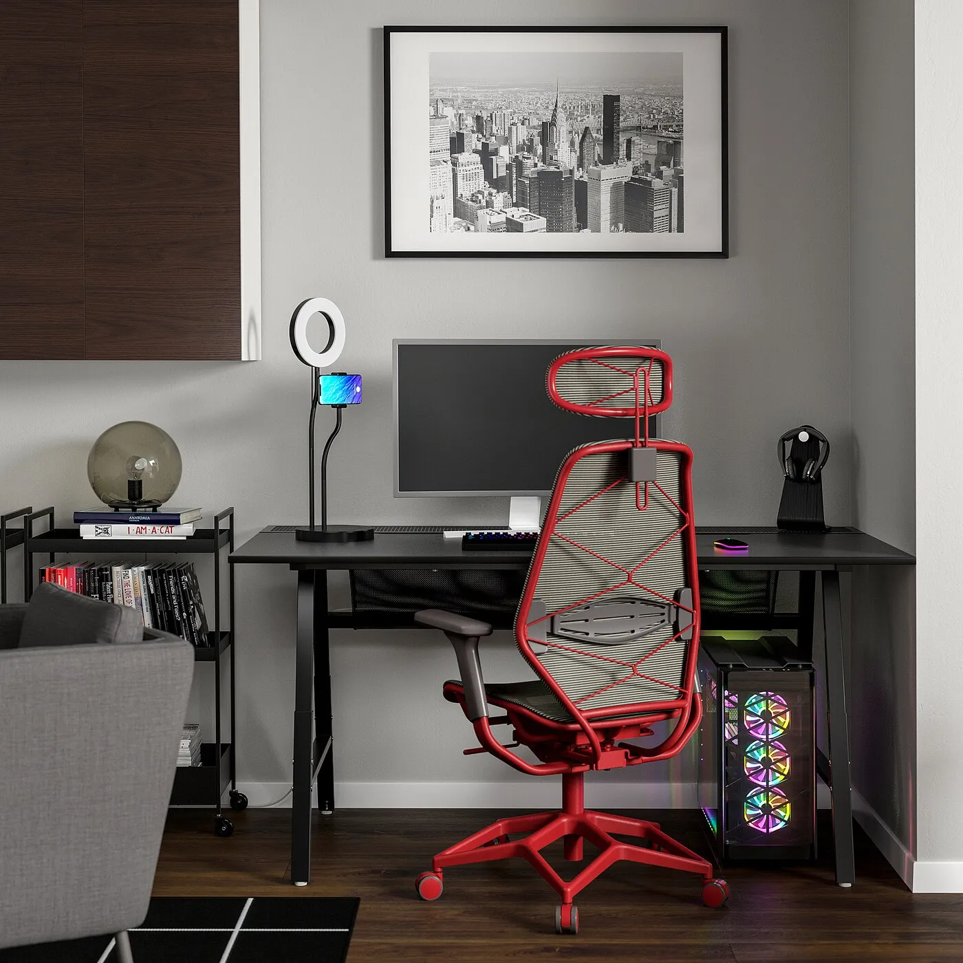 UTESPELARE / STYRSPEL, игровой стол и кресло, черный/серый, красный