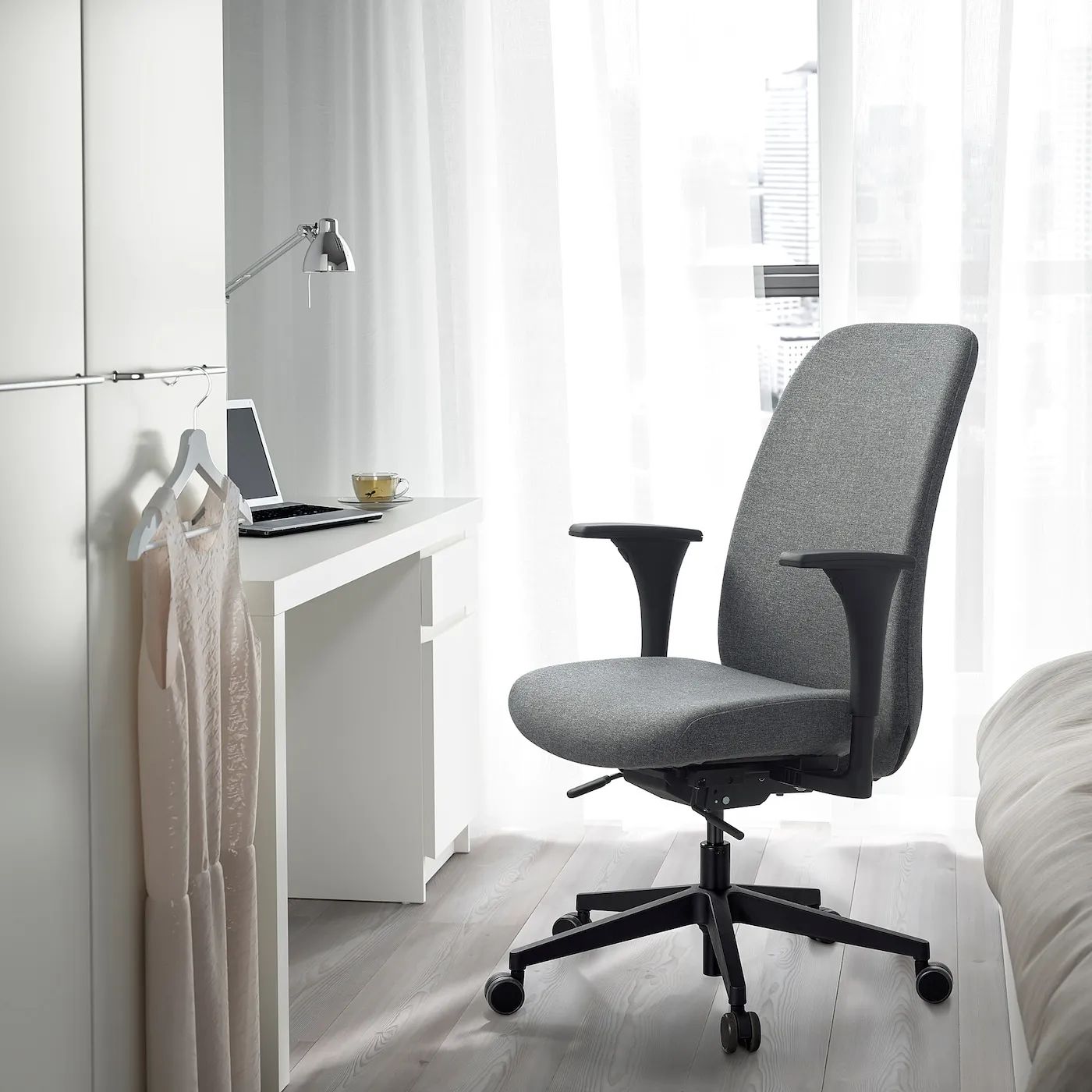 Минималистичный стиль, сочетающийся с максимальной функциональностью. Эргономичное офисное кресло VALLFJÄLLET легко настраивается для поддержания комфортной позиции тела — как в офисе, так и дома.