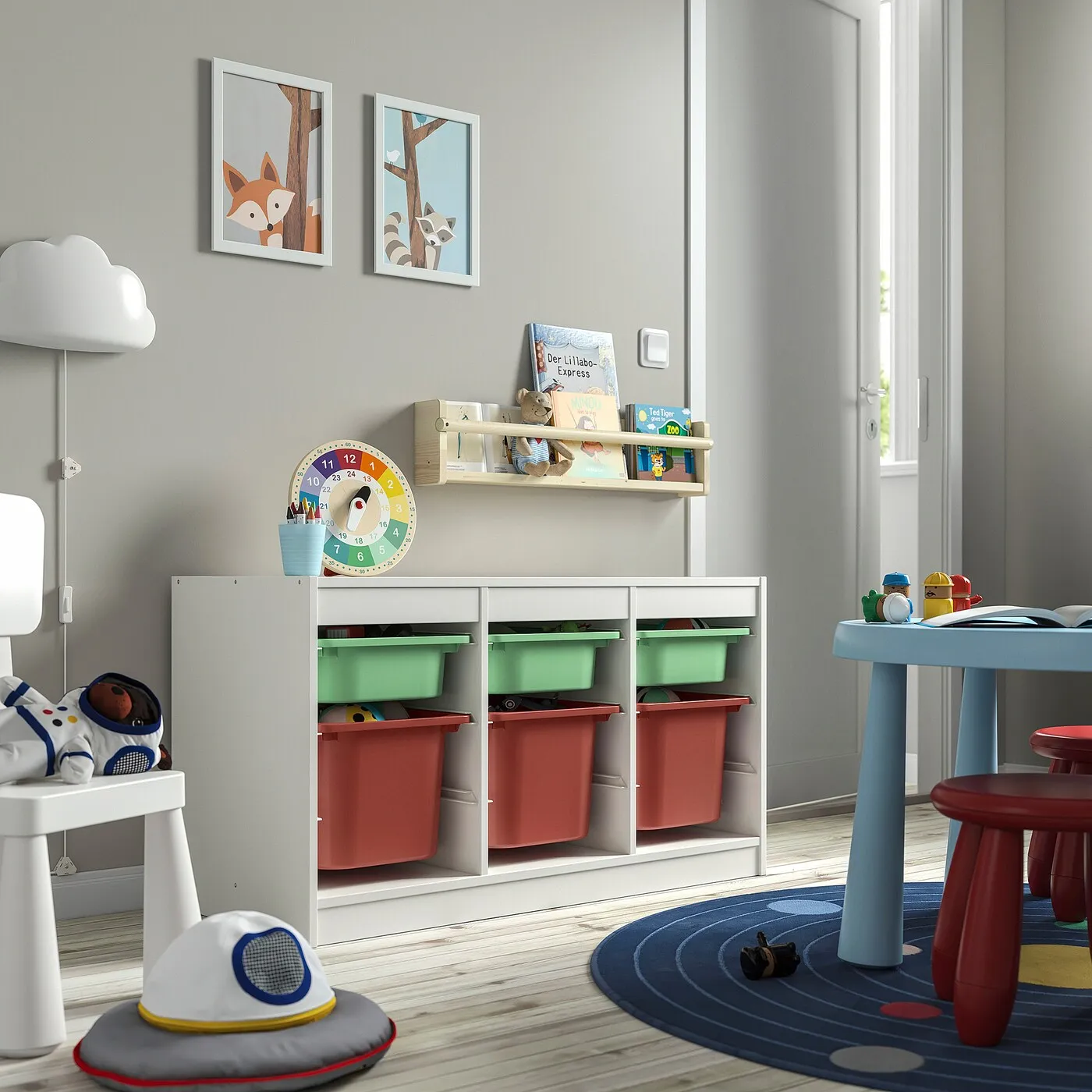 Детям нужно хорошее и просторное место для хранения их вещей. Серия TROFAST предлагает деревянные каркасы, сетчатые и пластиковые коробки и лотки (не менее 50% переработанного материала). Легко вытаскивать, переносить и ставить обратно.
