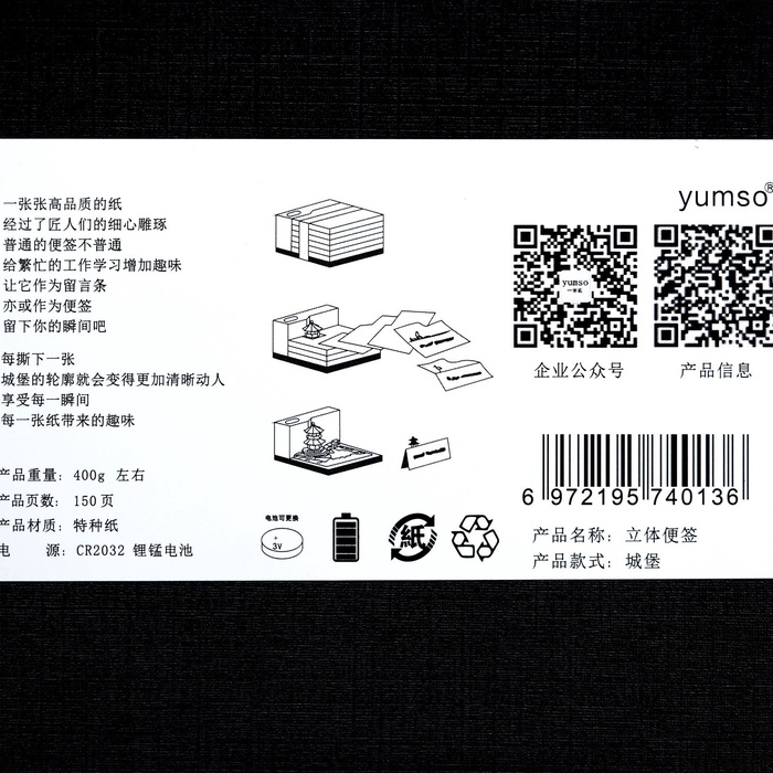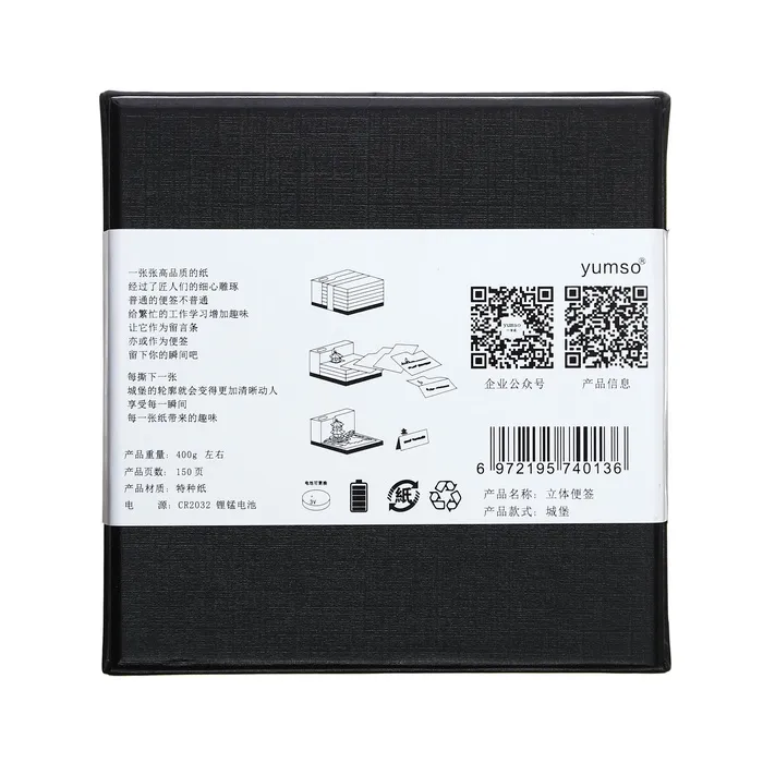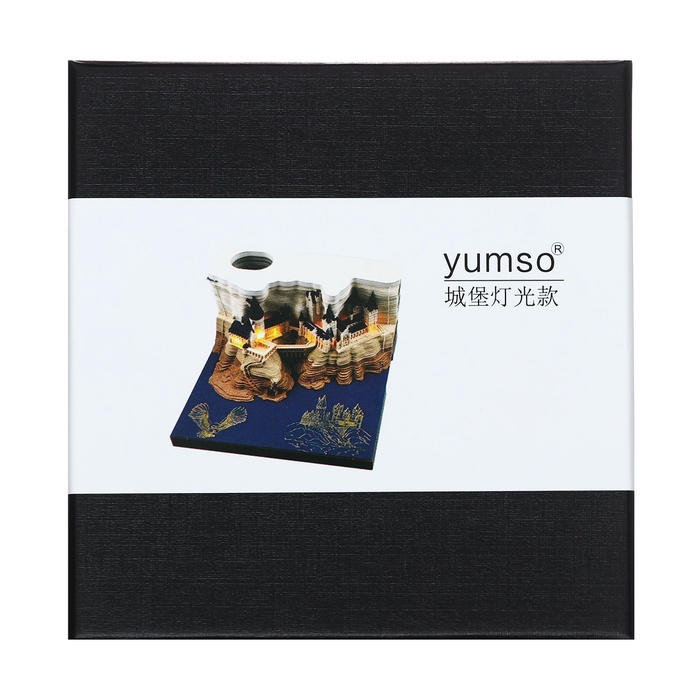 3D блок c подсветкой в коробке для заметок "Замок" — это оригинальный аксессуар для рабочего стола или домашнего использования. Дизайн в формате 3D добавляет нотку креативности и украшает рабочее пространство, а также может стать отличным подарком для коллег или друзей. За счет стильного оформления и функциональности блок не только полезен, но и эстетически приятен.