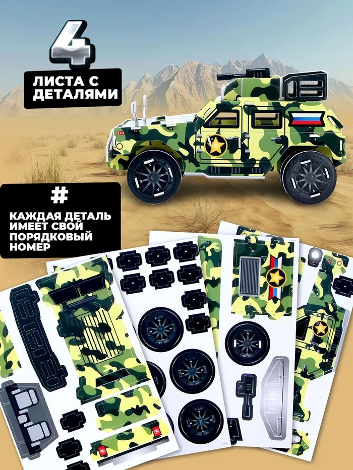 3D Конструктор из пенокартона «Военный внедорожник», 46 деталей — Характеристики