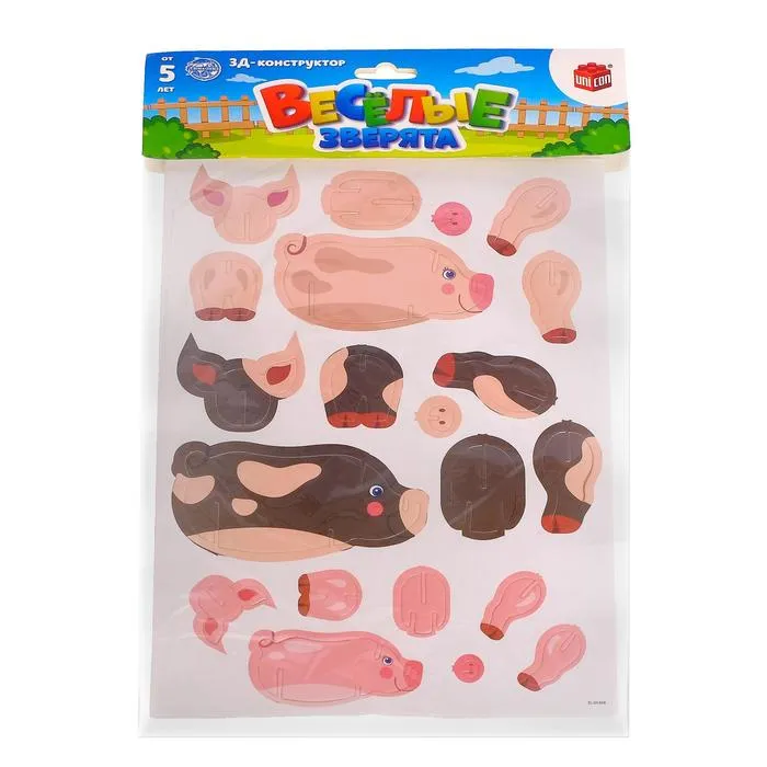 С 3D-конструктором малыш познакомится с принципами трёхмерного моделирования и легко создаст фигурку, с которой потом будет с удовольствием играть. Для сборки не потребуется клей или ножницы. Достаточно выдавить картонные элементы с листа-основы и, руководствуясь числовыми обозначениями на деталях, последовательно соединить их друг с другом.