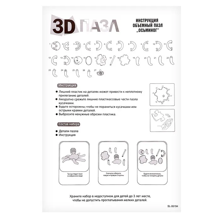 3D пазл «Осьминог», кристаллический, 26 деталей — Характеристики