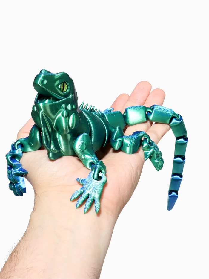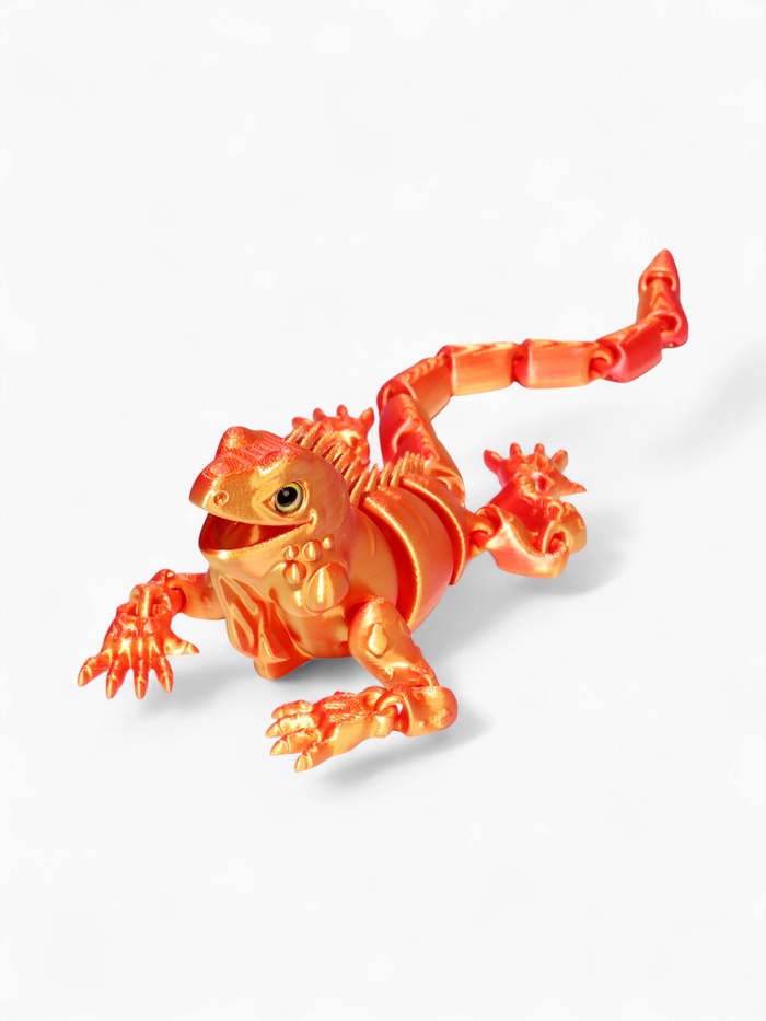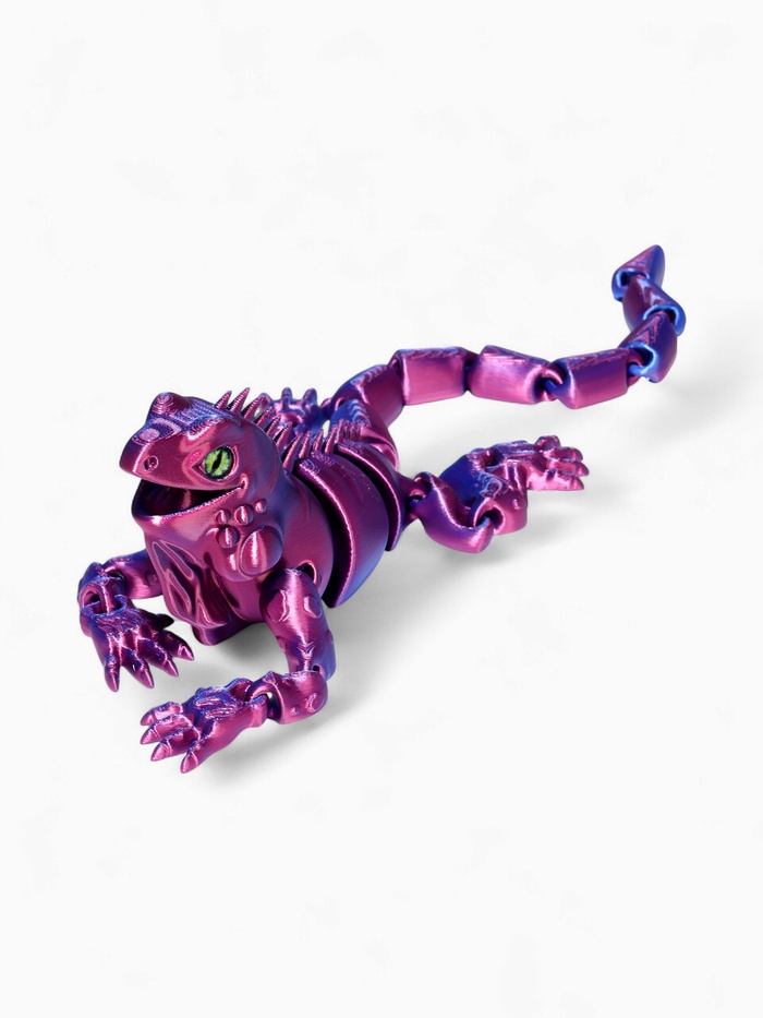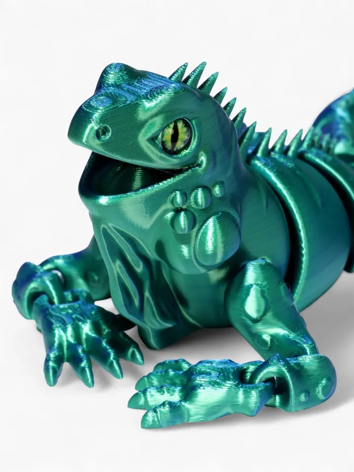 - Анатомическая точность: технология 3D-печати сохраняет все особенности игуаны — фактуру кожи, форму когтей и характерный гребень вдоль спины. Модель выглядит реалистично и естественно.