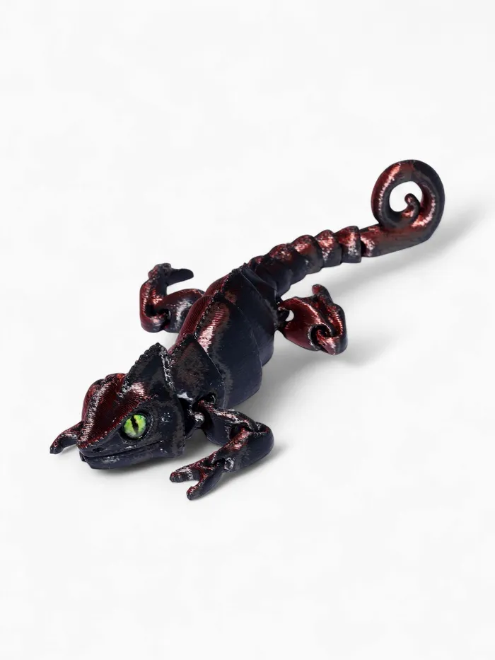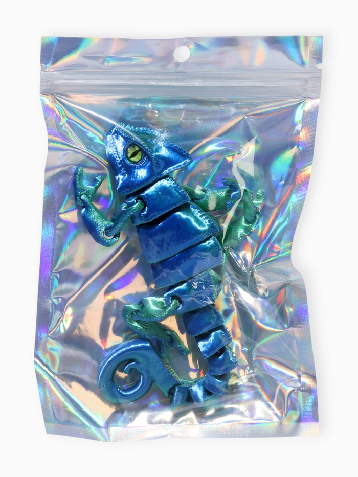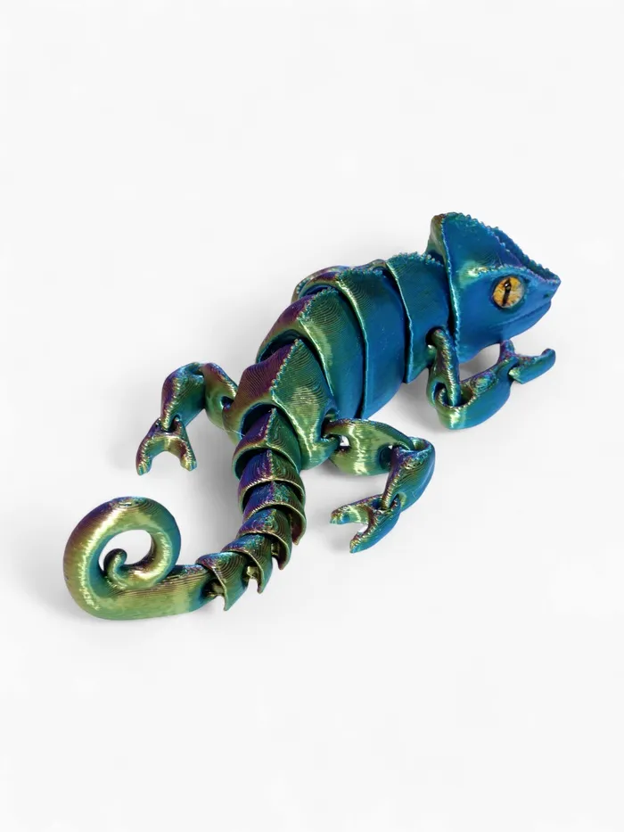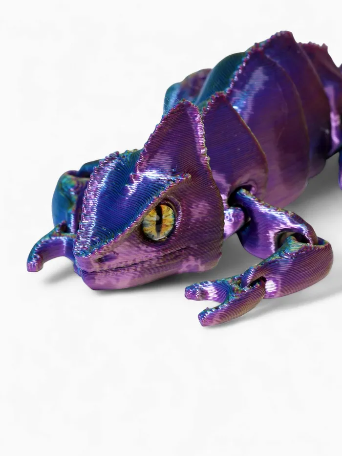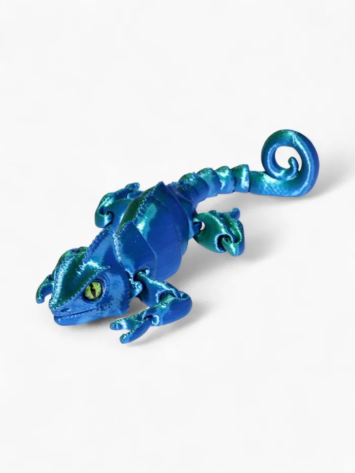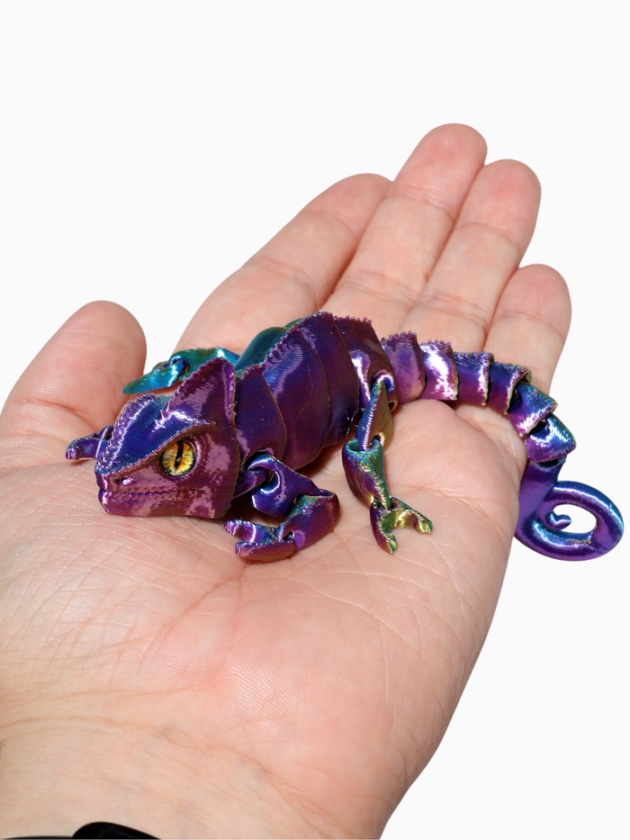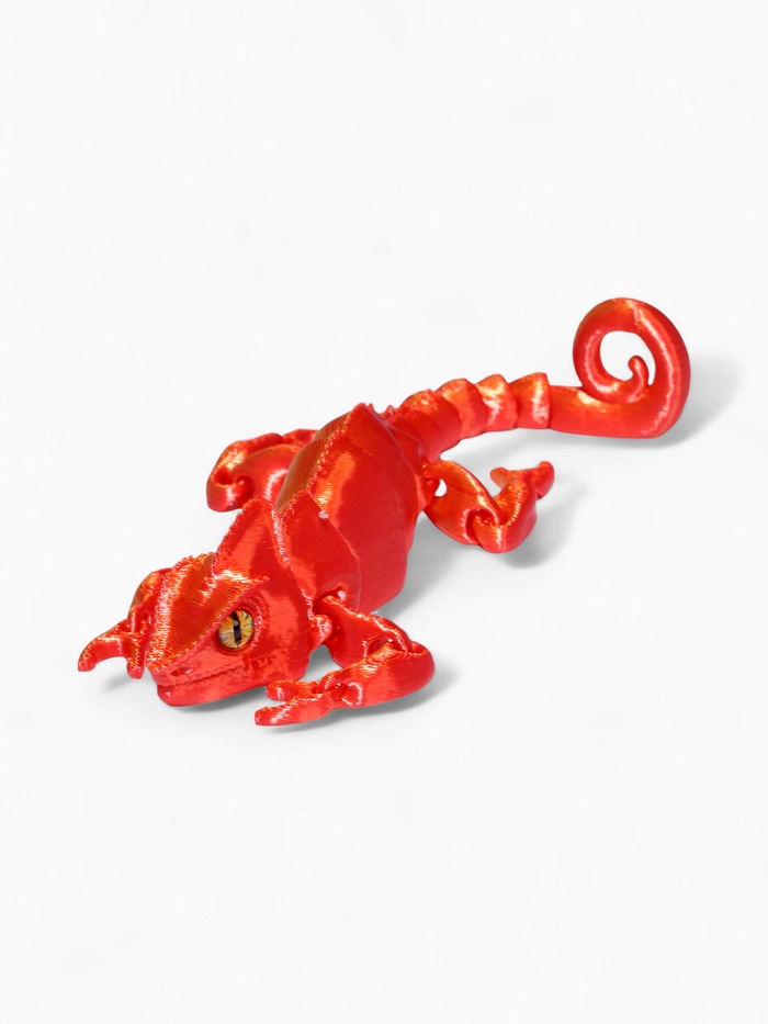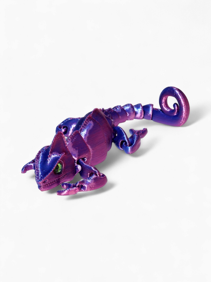 - Анатомическая точность: технология 3D-печати сохраняет ключевые особенности хамелеона — выпуклые глаза, цепкий хвост и текстуру кожи. Модель выглядит реалистично и естественно.