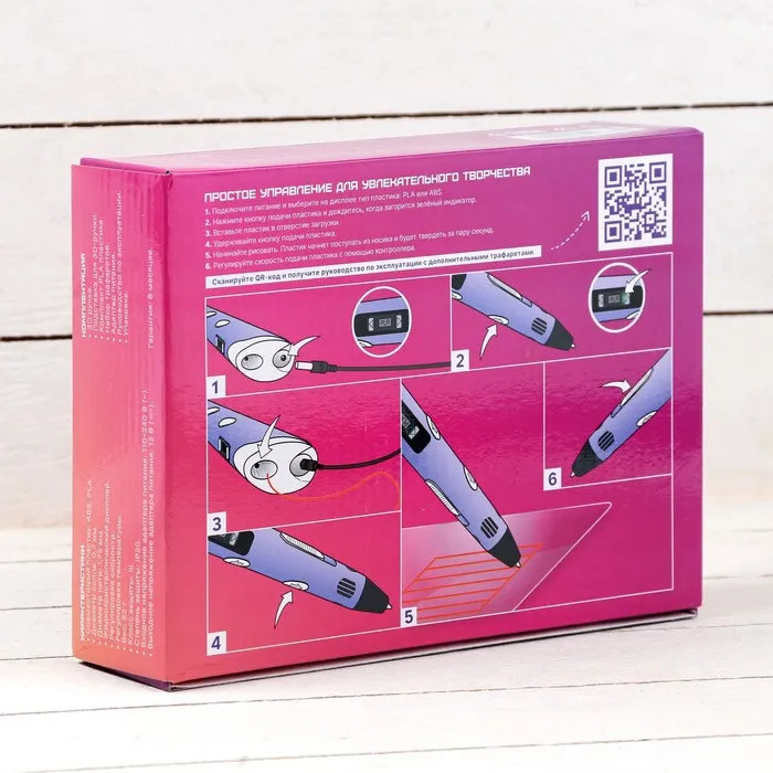 3D ручка Luazon, дисплей, работа с ABS и PLA, пластик в комплекте, фиолетовая — Характеристики