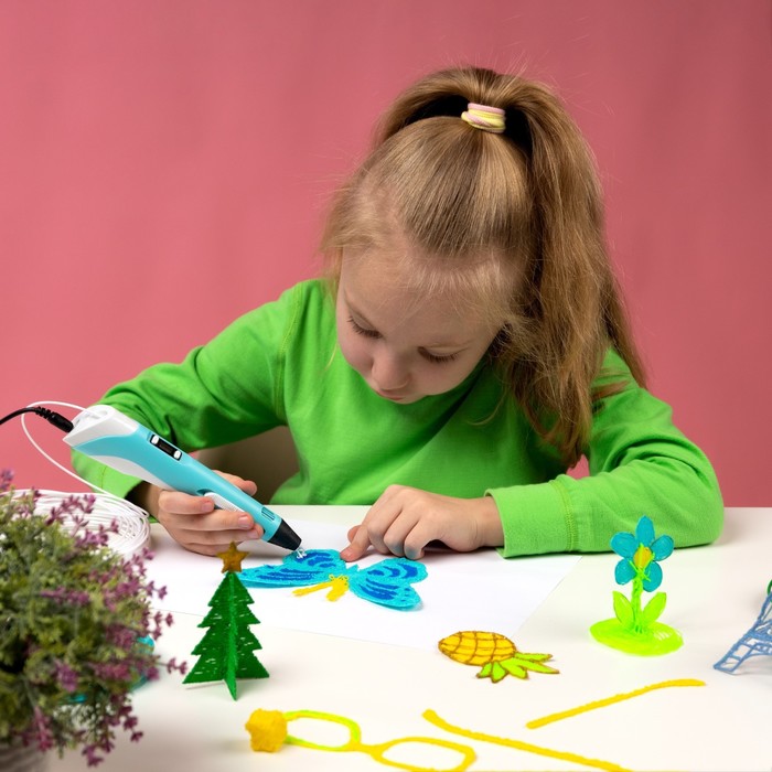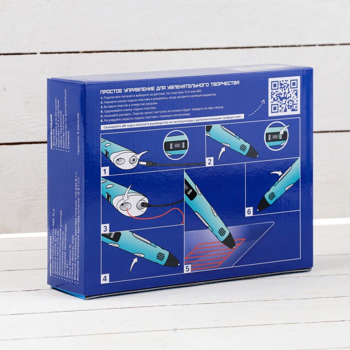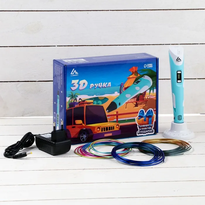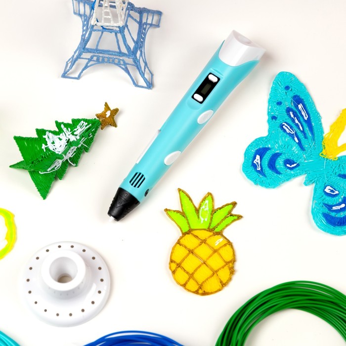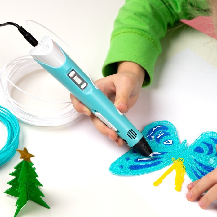3D ручка Luazon, дисплей, работа с пластиком ABS и PLA, пластик в комплекте, голубая — Характеристики