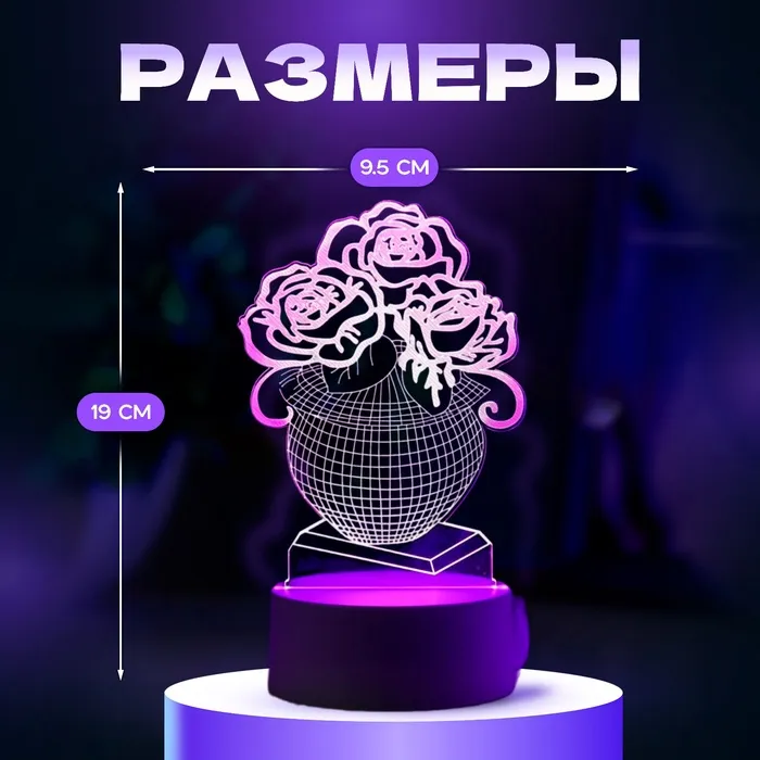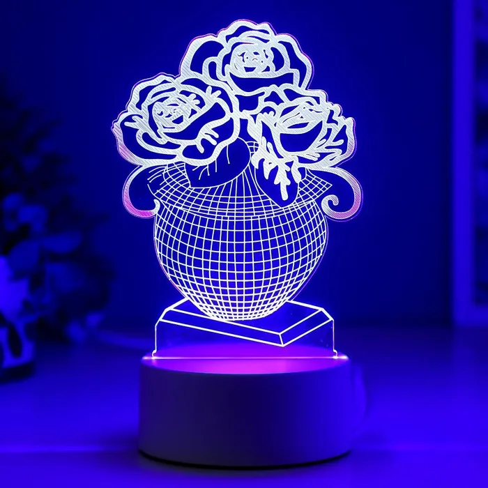 3D-светильник настольный светодиодный RISALUX «Ваза с цветами», LED, RGB, от сети — Характеристики