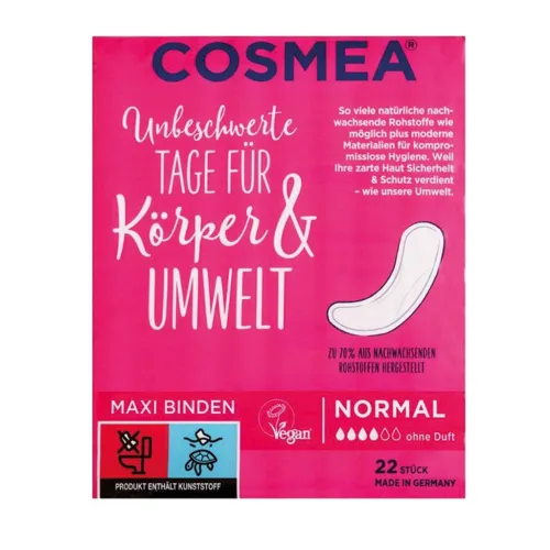 Прокладки Cosmea Normal обеспечивают оптимальную защиту благодаря высокой впитывающей способности и надежной защите от боковых протечек. Дышащая, шелковисто-мягкая поверхность особенно приятна для кожи и обеспечивает высочайший уровень комфорта.