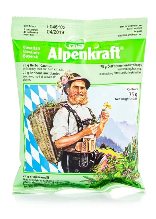 Водный экстракт трав, экстракт горной сосны и солодки, эфирные масла звездчатого аниса, горной сосны, фенхеля, лимона, эвкалипта и масла перечной мяты, мед, солодовый экстракт.