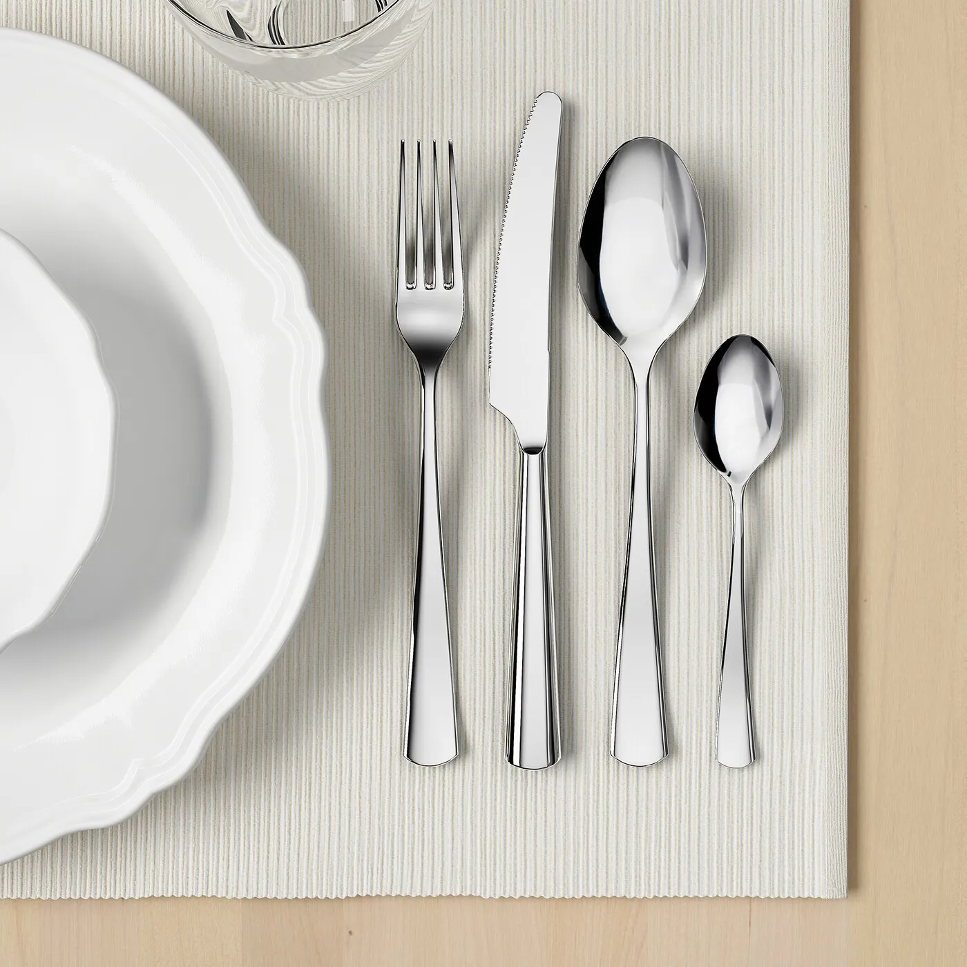 Состав: вилка, нож, ложка и чайная ложка по 6 штук каждого.