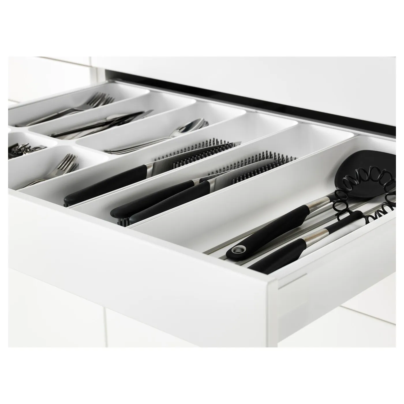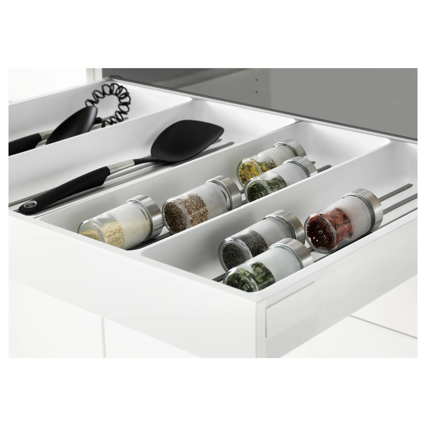 Чтобы оставаться организованным и эффективно использовать пространство, ящики MAXIMERA дополнят VARIERA аксессуары, такие как лоток для столовых приборов, поднос для утвари или держатель для тарелок.