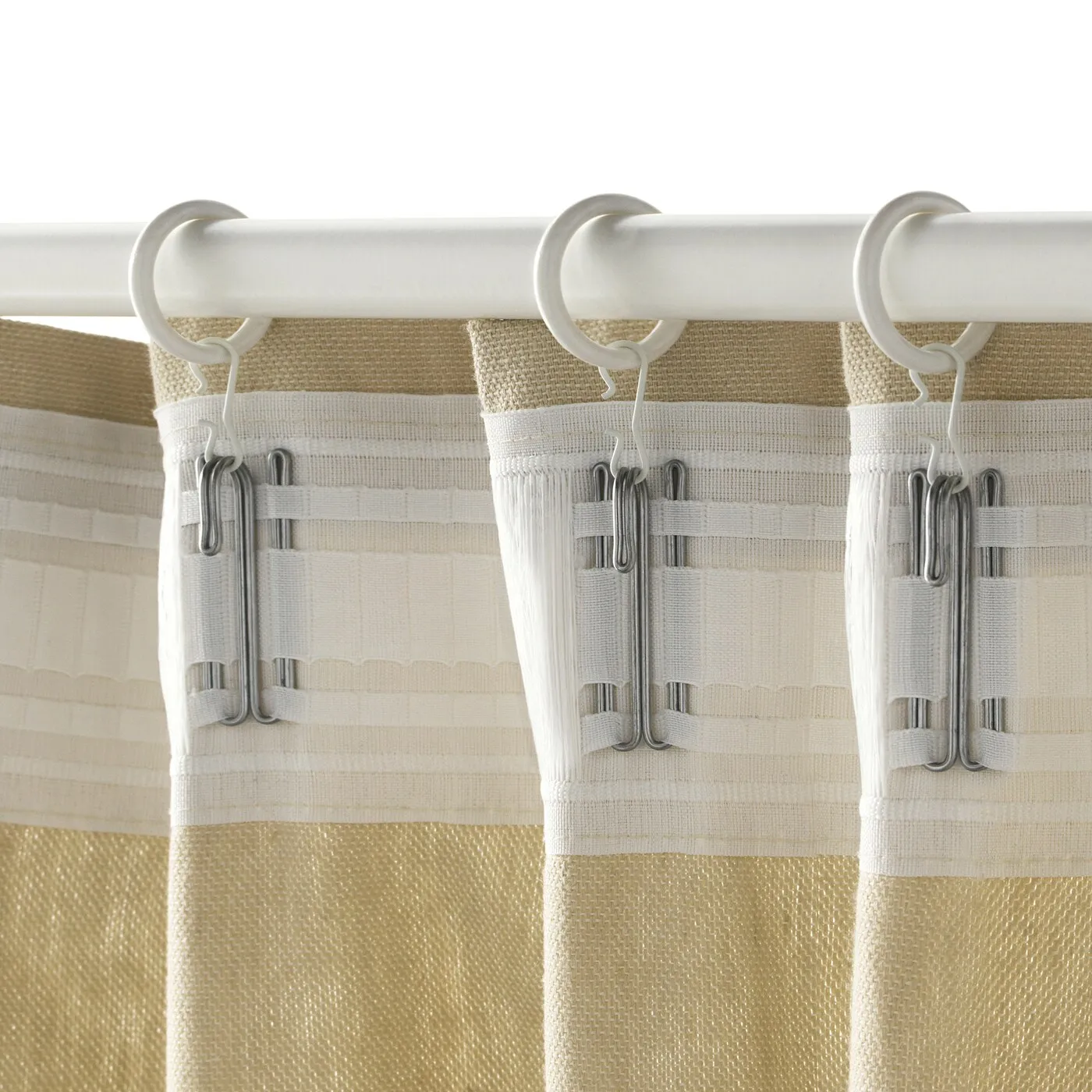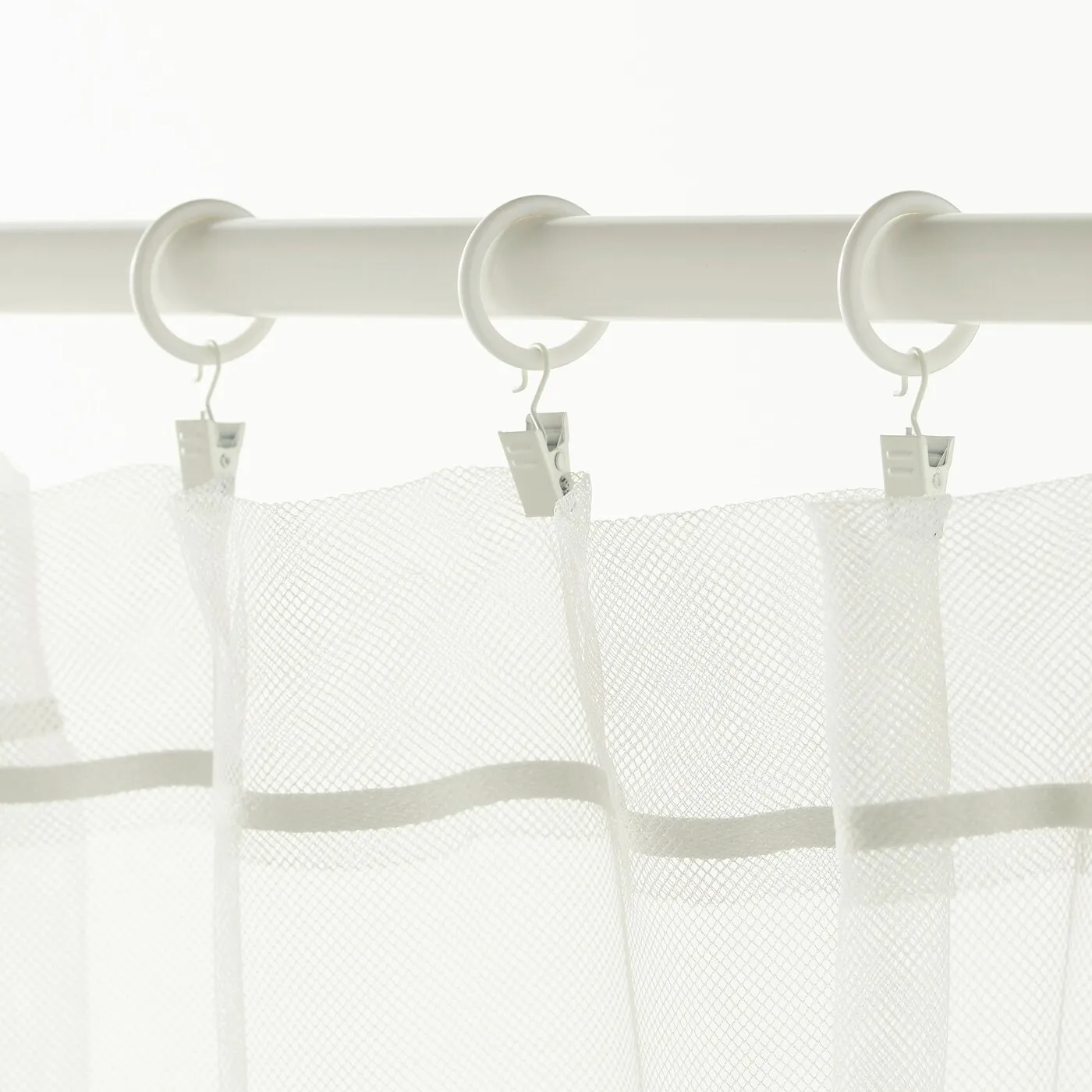 Эти белые кольца для штор легко скользят по карнизу. Вы можете выбрать, как крепить их к шторам — с помощью зажимов или крючков — всё уже включено в комплект.
