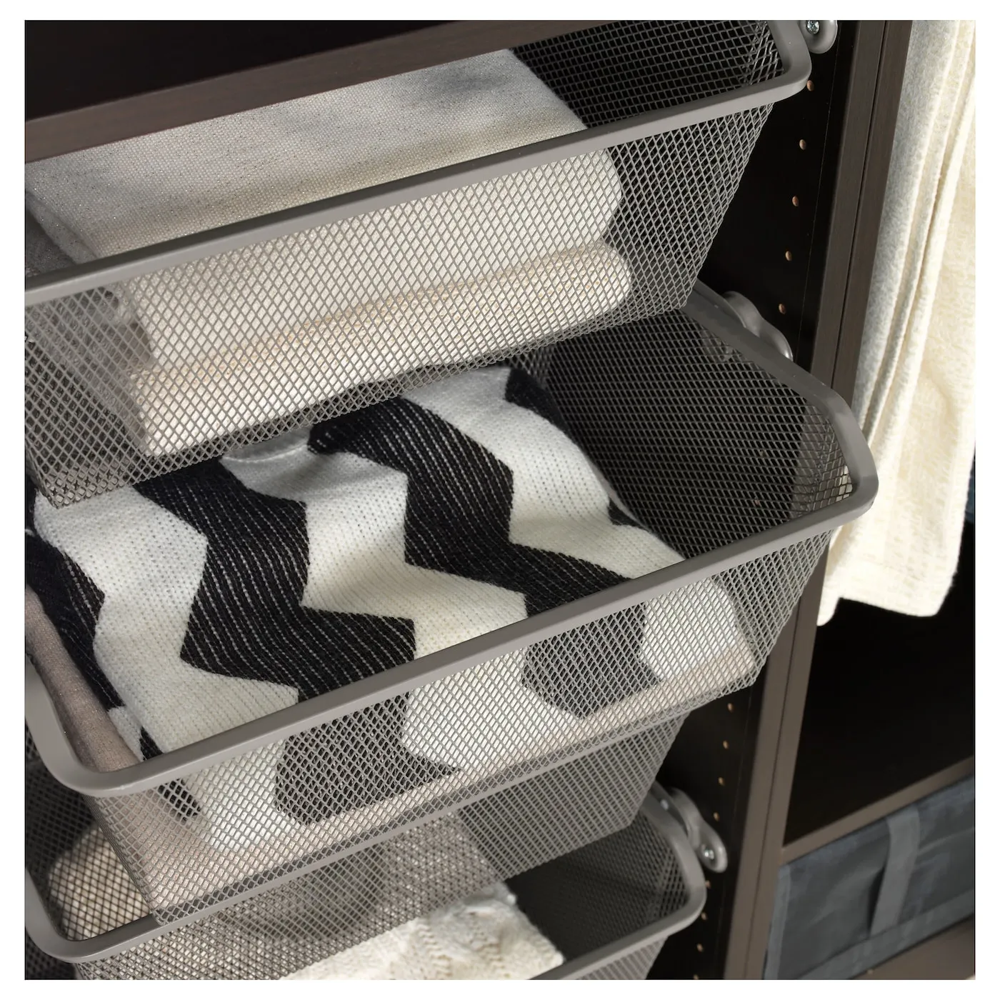 Сетчатая корзина обеспечивает циркуляцию воздуха и идеально подходит для хранения сложенной одежды, носков или аксессуаров.