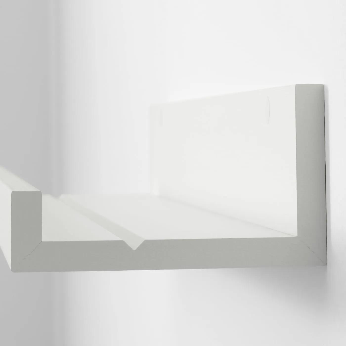 Полка для картин имеет специальную канавку, чтобы небольшие рамки стояли под правильным углом.