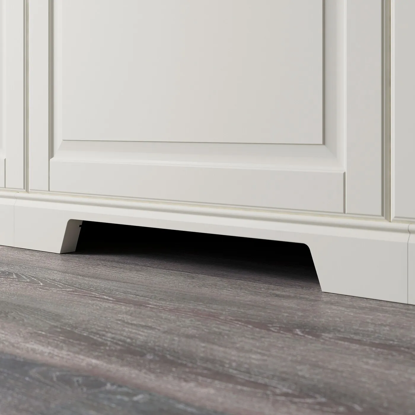 Этот плинтус имеет вырез для вентиляции холодильника и морозильной камеры, а также может использоваться под шкафами с бытовой техникой или раковиной.