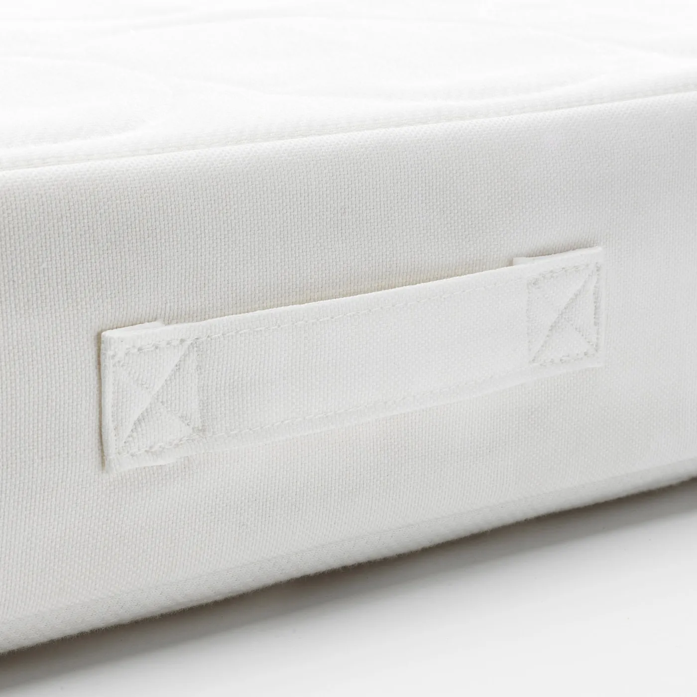 Матрас для детской кроватки, в котором в каждой детали чувствуется забота, начиная с хорошо вентилируемой конструкции и заканчивая долговечной тканью и аккуратными строчками.