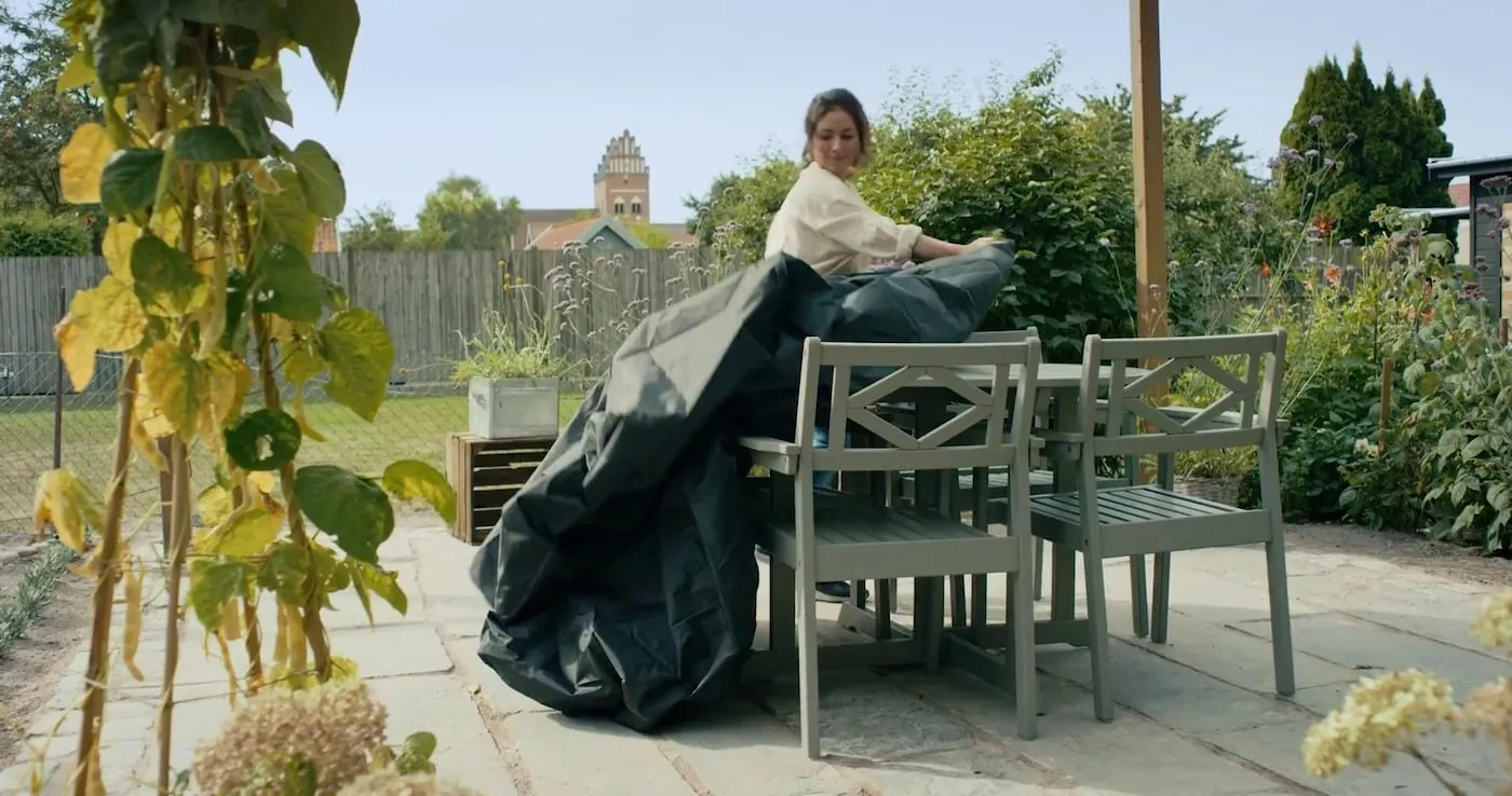 Этот водонепроницаемый чехол продлит срок службы вашего обеденного набора на 8 мест. Он защищает от дождя, солнца, грязи и пыли – так что можно сразу присаживаться, не убирая мебель заранее.