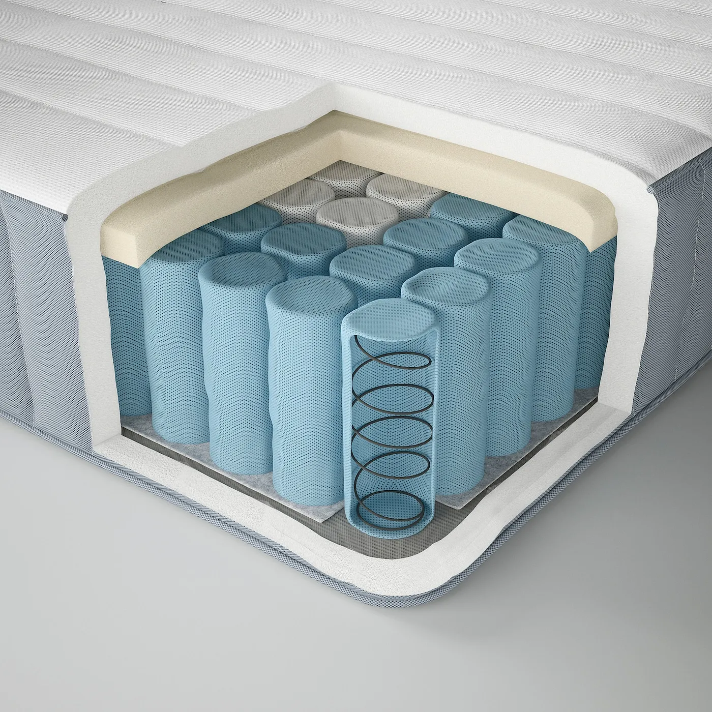 Жесткий матрас высотой 24 см с независимыми пружинами. Равномерное распределение веса тела благодаря комфортным зонам, обеспечивающим более мягкую поддержку для бедер и плеч. Толстый слой пены добавляет комфорт.