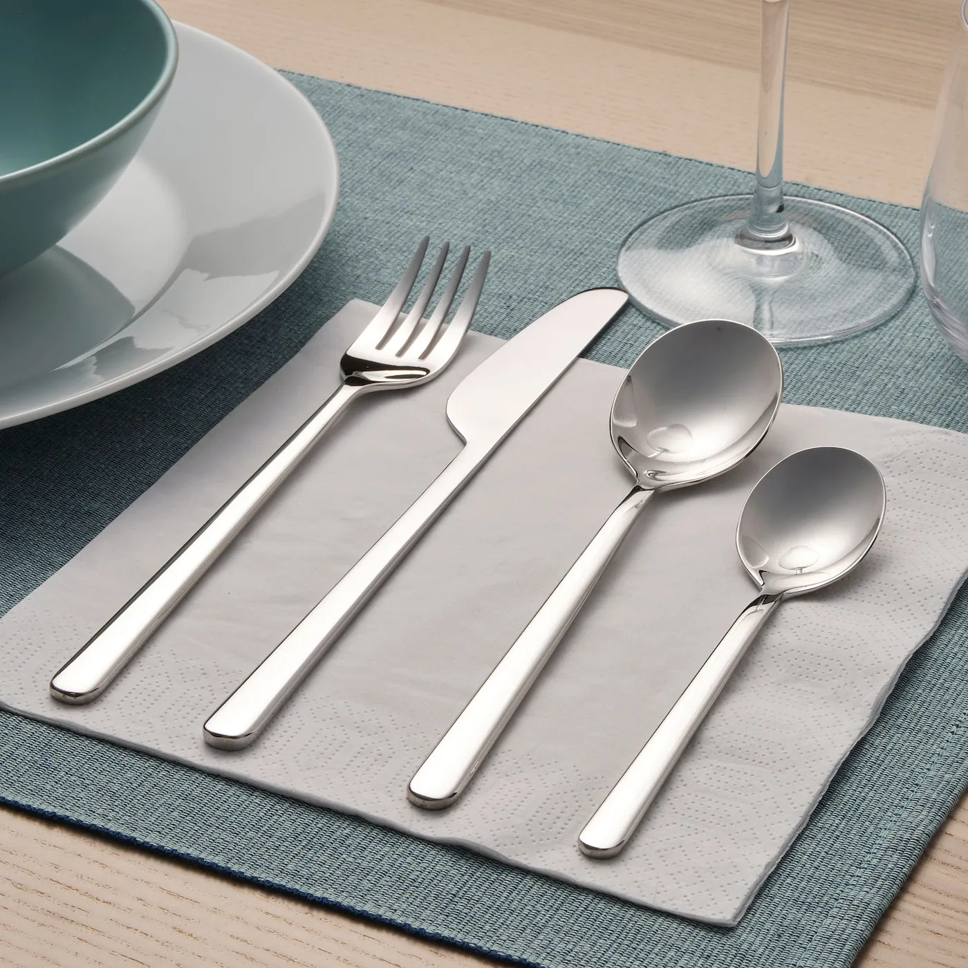 Состав набора: вилка, нож, столовая ложка и чайная ложка, по 6 каждого типа.