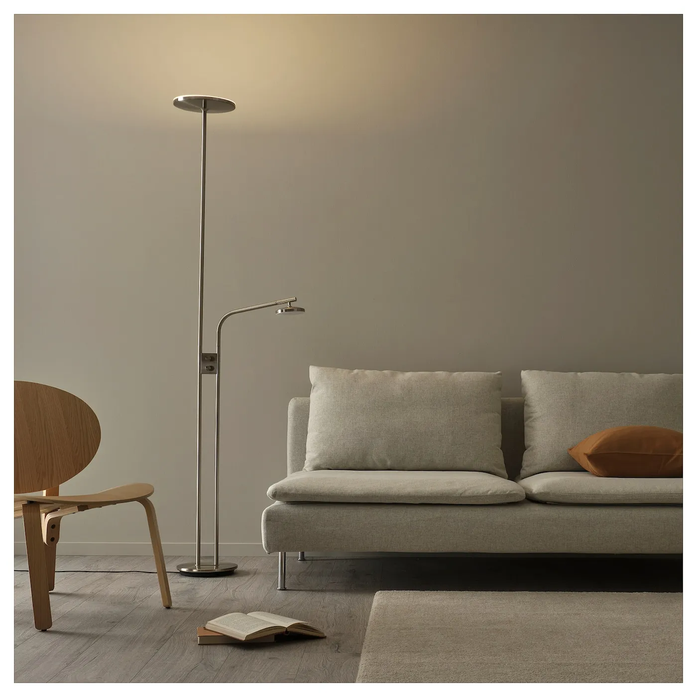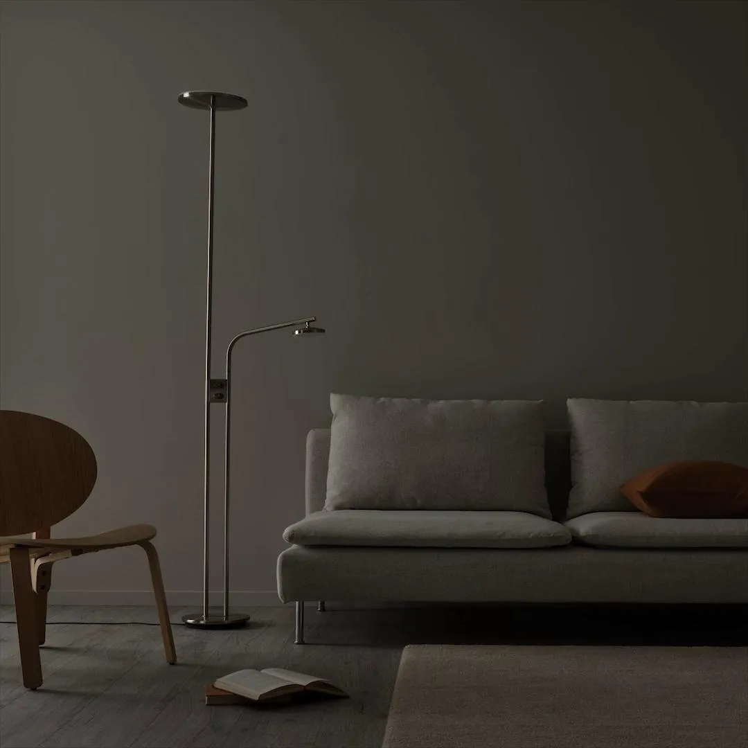 Два стильных светильника на одном прочном основании. Верхний светильник с диммером обеспечивает хорошее освещение, а лампа для чтения расположена ниже и может легко направляться в нужное вам место.