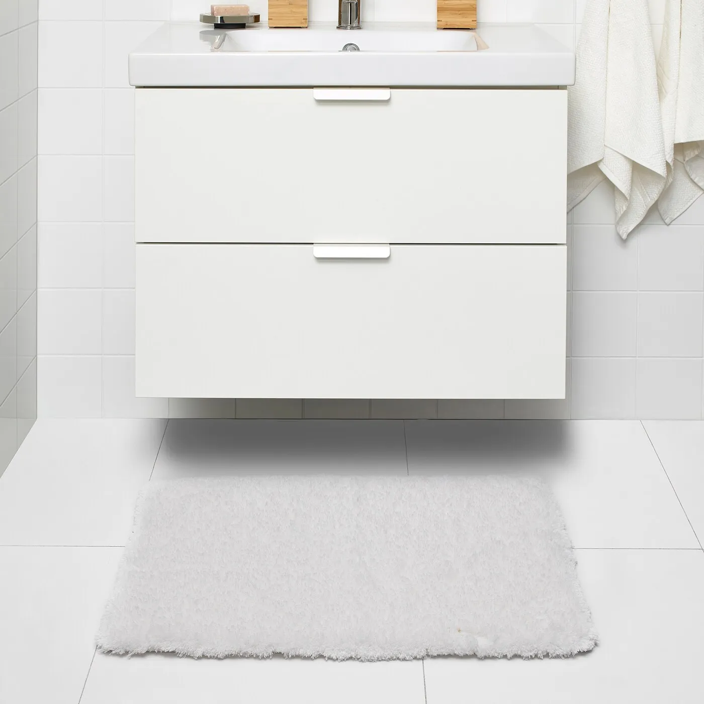 Кто бы мог подумать, что переработанный полиэстер может обрести новую жизнь в виде мягкого белого коврика для ванной? Положите его в своей ванной и подарите своим ногам ощущение уюта и тепла каждый раз.