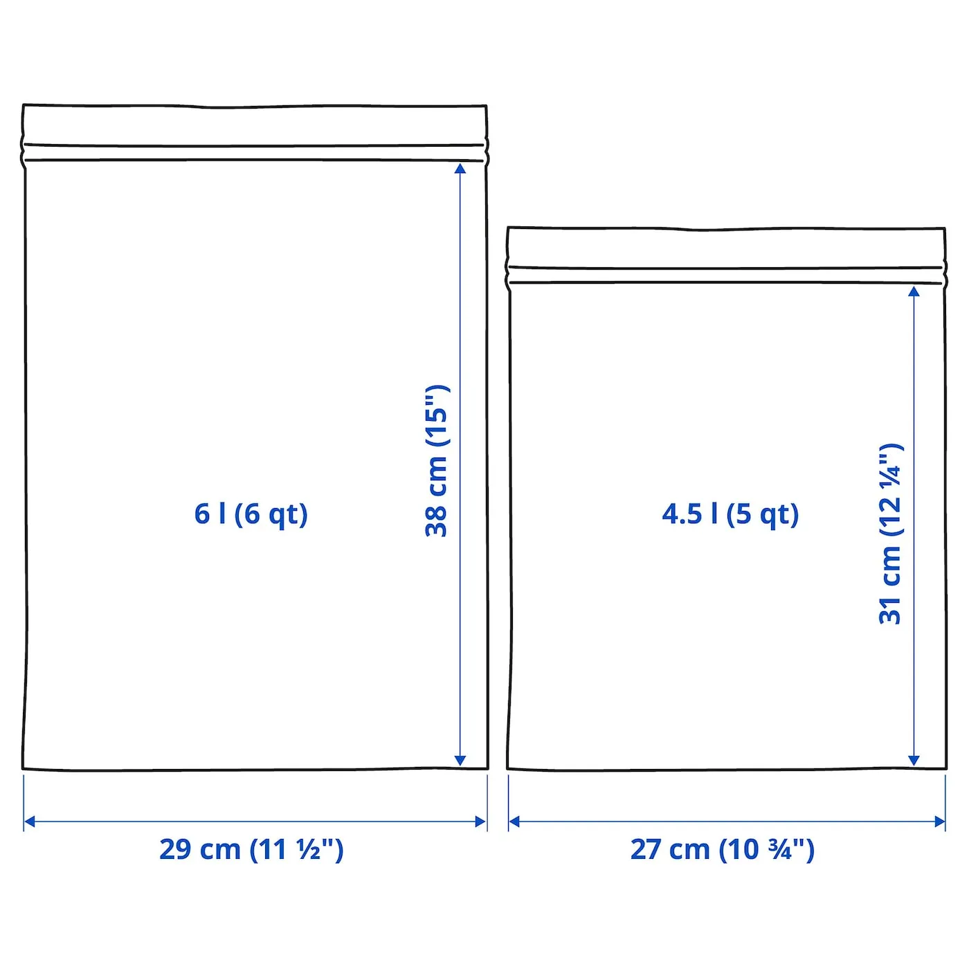Комплект включает: 15 пакетов 6 л (внутренний размер 29x38 см) и 15 пакетов 4,5 л (внутренний размер 27x31 см).