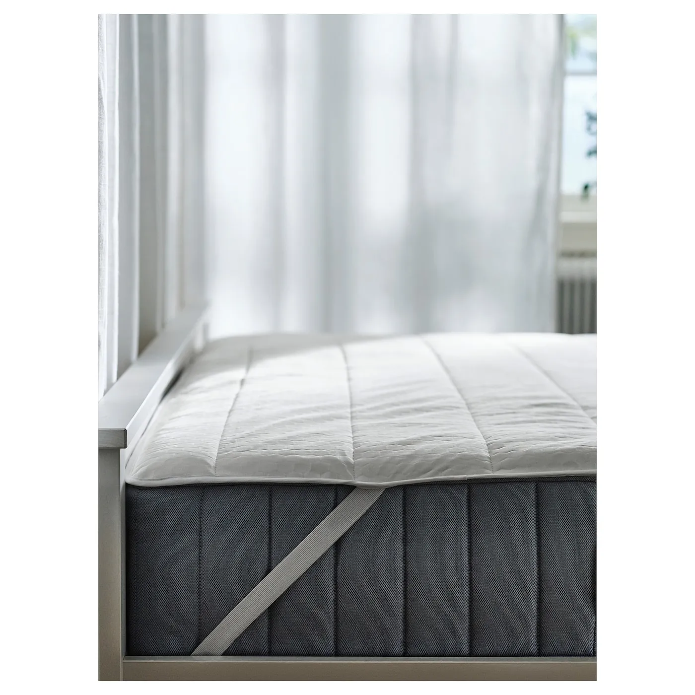 Эластичные ленты в каждом углу удерживают наматрасник на месте.