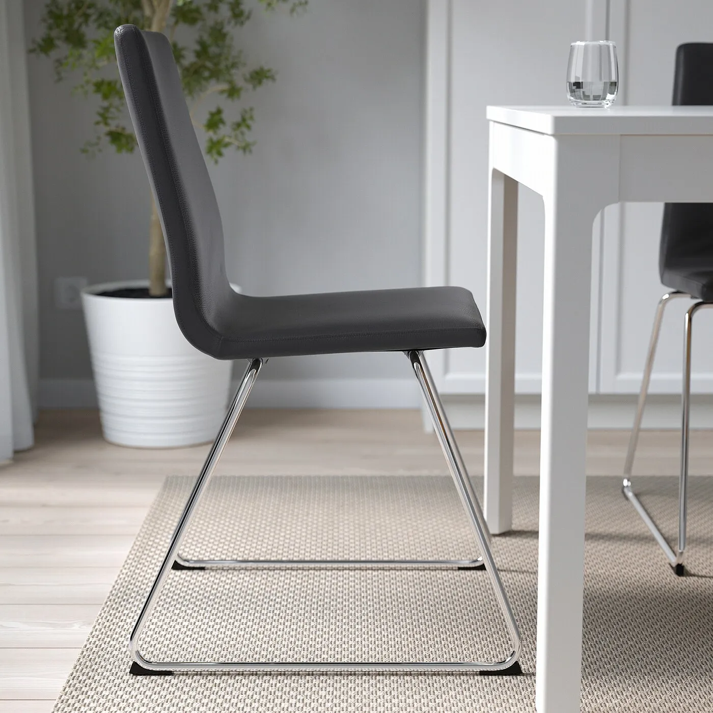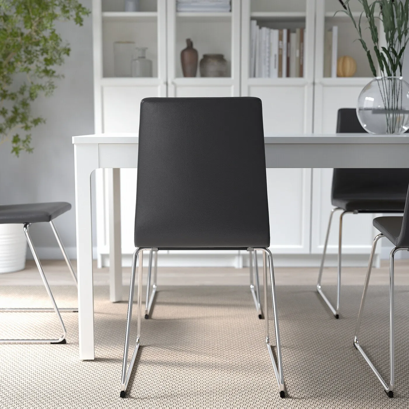Стул LILLÅNÄS в черном цвете сочетает современный стиль и комфорт для повседневного использования. Эргономичное сиденье с подушкой равномерно распределяет нагрузку, а гибкая спинка дарит удобство. Легко ухаживать благодаря кожаному чехлу, который просто протирать.