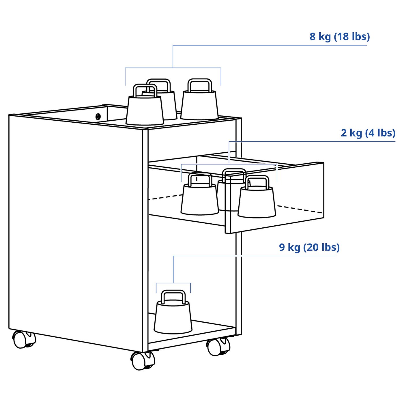 Модуль с ящиками на колесах, который можно легко перемещать туда, где он нужен в данный момент.