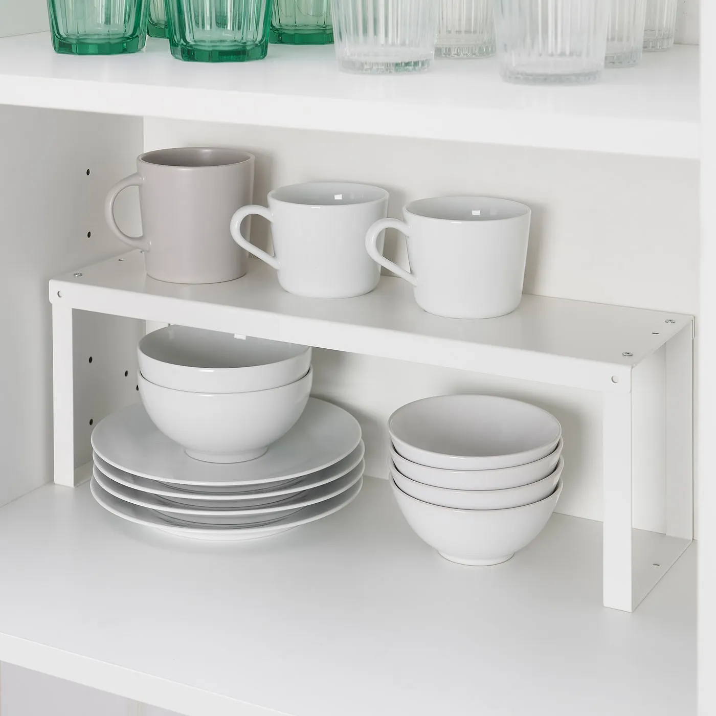 Идеально подходит для размещения на полке, чтобы создать пространство для хранения стаканов, мисок и баночек с приправами.