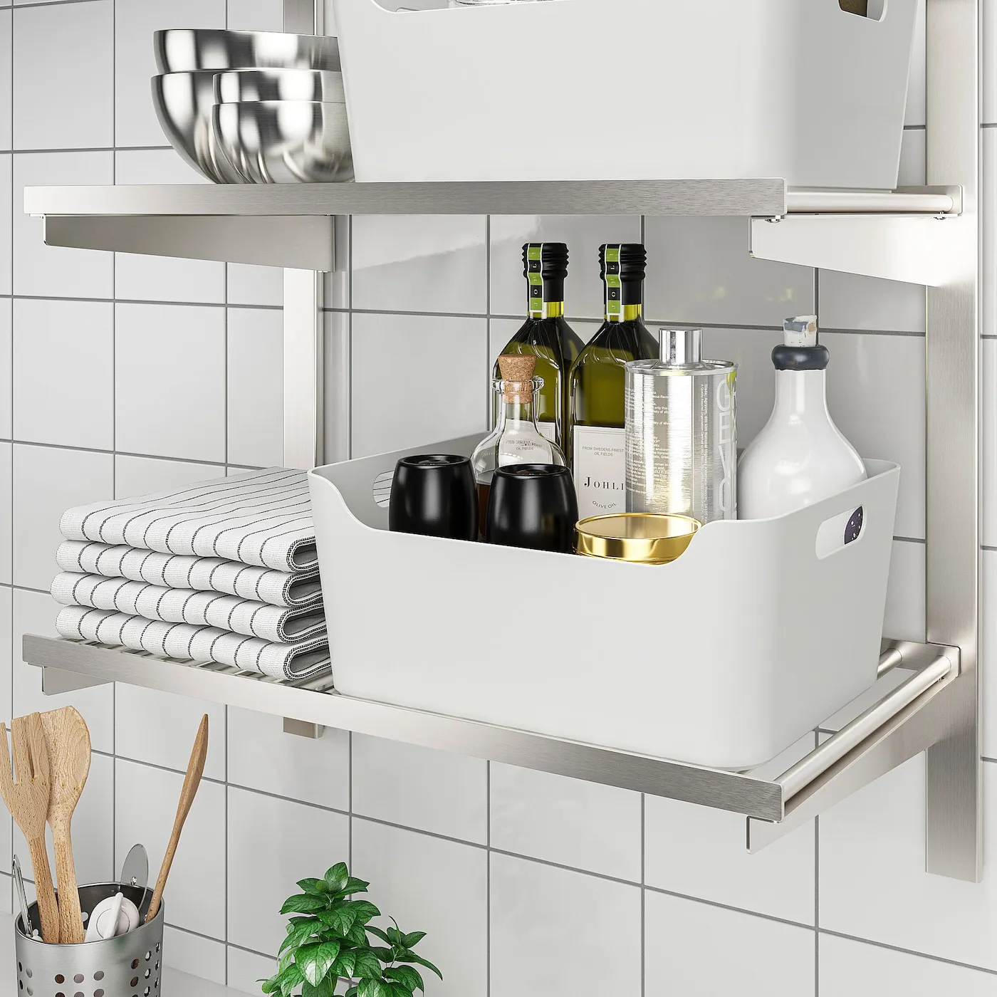 Коробку UPPDATERA легко вынуть из кухонных ящиков или с полок благодаря двум удобным ручкам.