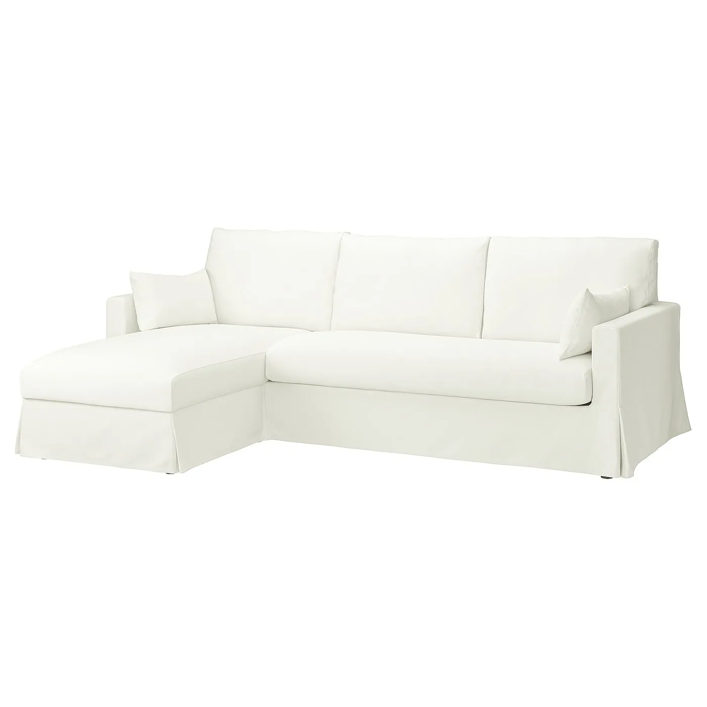 Прочный и полумягкий чехол с фактурной тканью. Выполнен из материала Hallarp, состоящего из хлопка и полиэстера, и легко содержится в чистоте благодаря съемной конструкции, подходящей для машинной стирки.