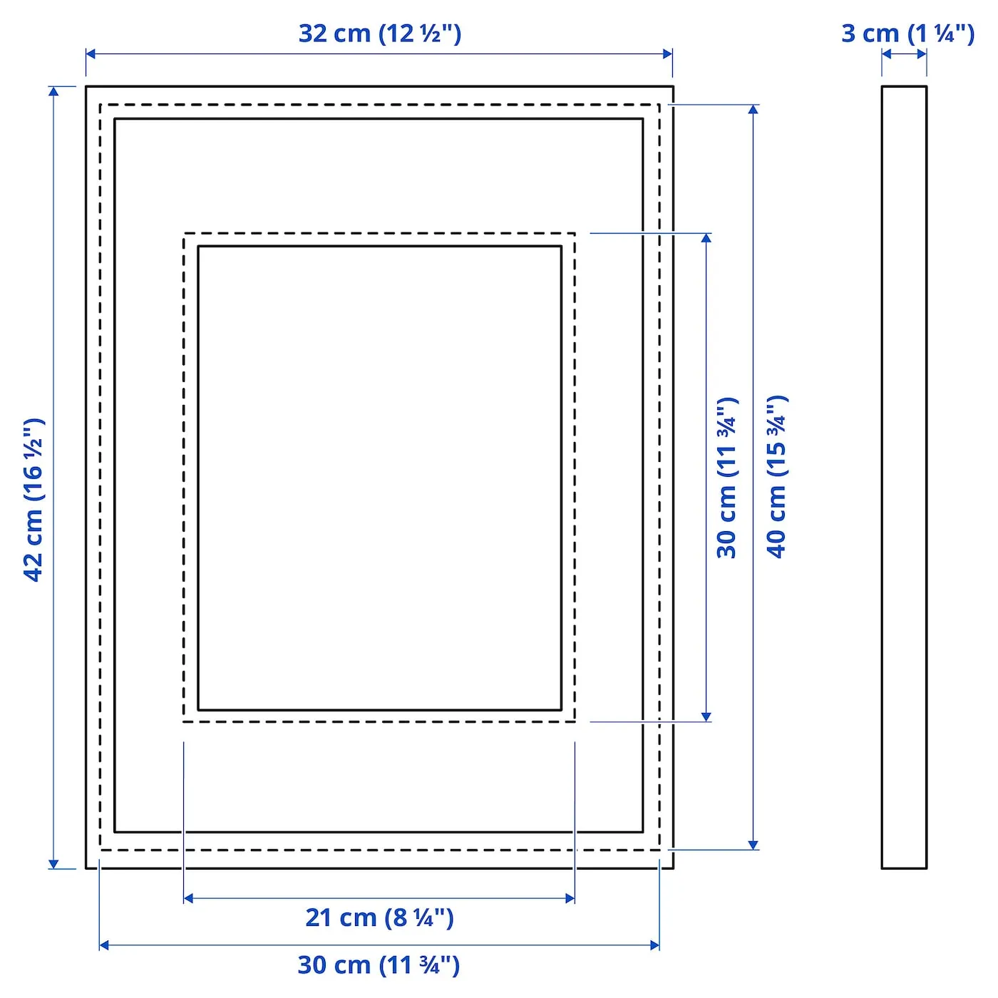 Эта рама совместима с картиной размером 21x30 см, если использовать её с паспарту, и с картиной размером 30x40 см, если использовать раму без паспарту.