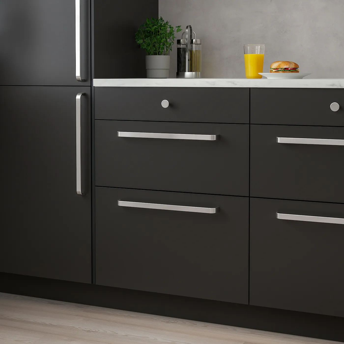 Эти гладкие ручки обеспечивают хороший захват и добавляют вашей кухне современный вид.