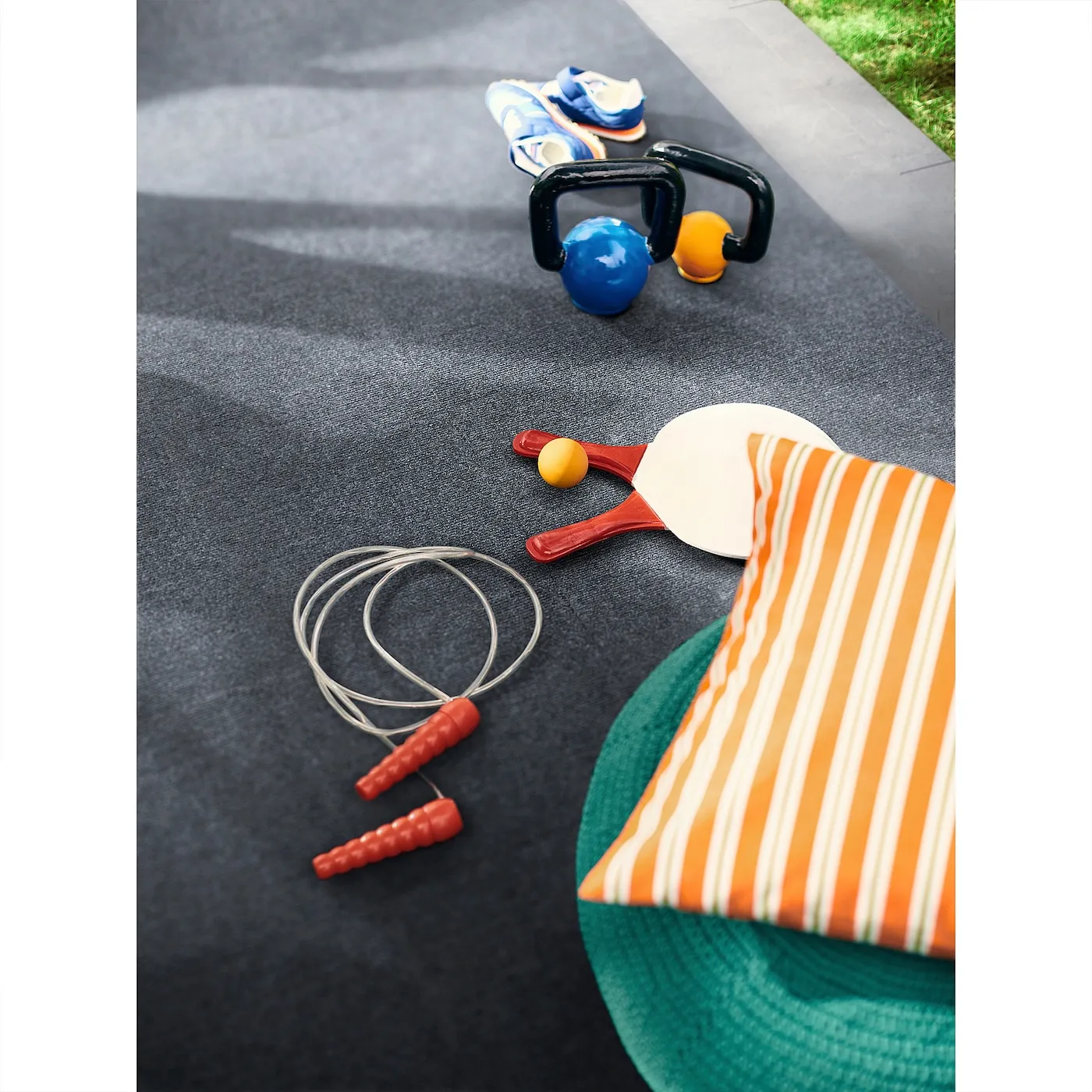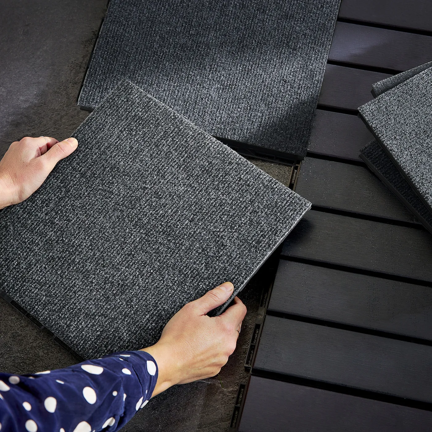Нравится мягкое ощущение под ногами? Напольное покрытие RUNNEN из текстиля легко соединяется и фиксируется на балконе или террасе ‒ снимайте обувь и наслаждайтесь.