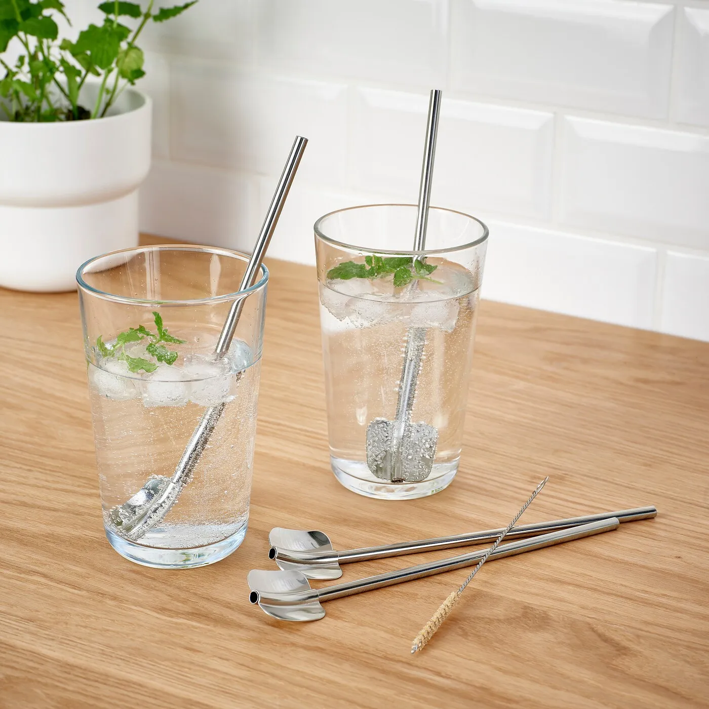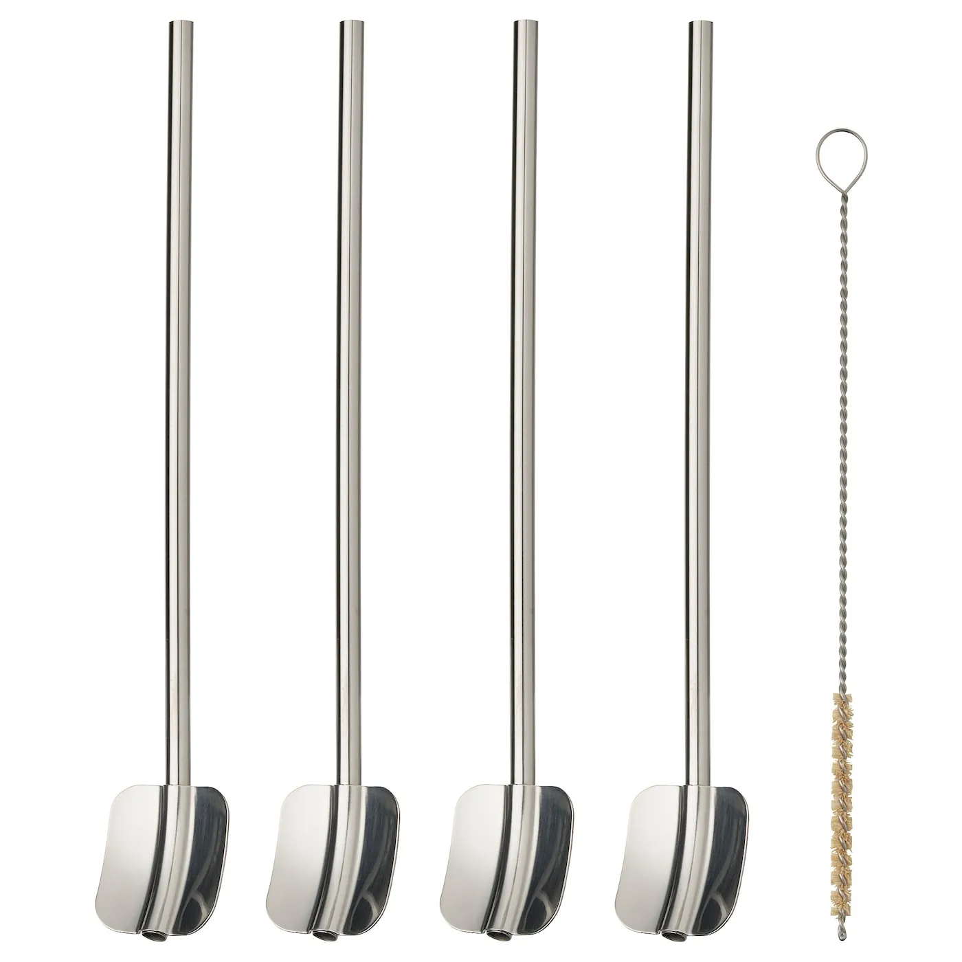 Состав: 4 трубочки с ложкой и 1 щетка для чистки.