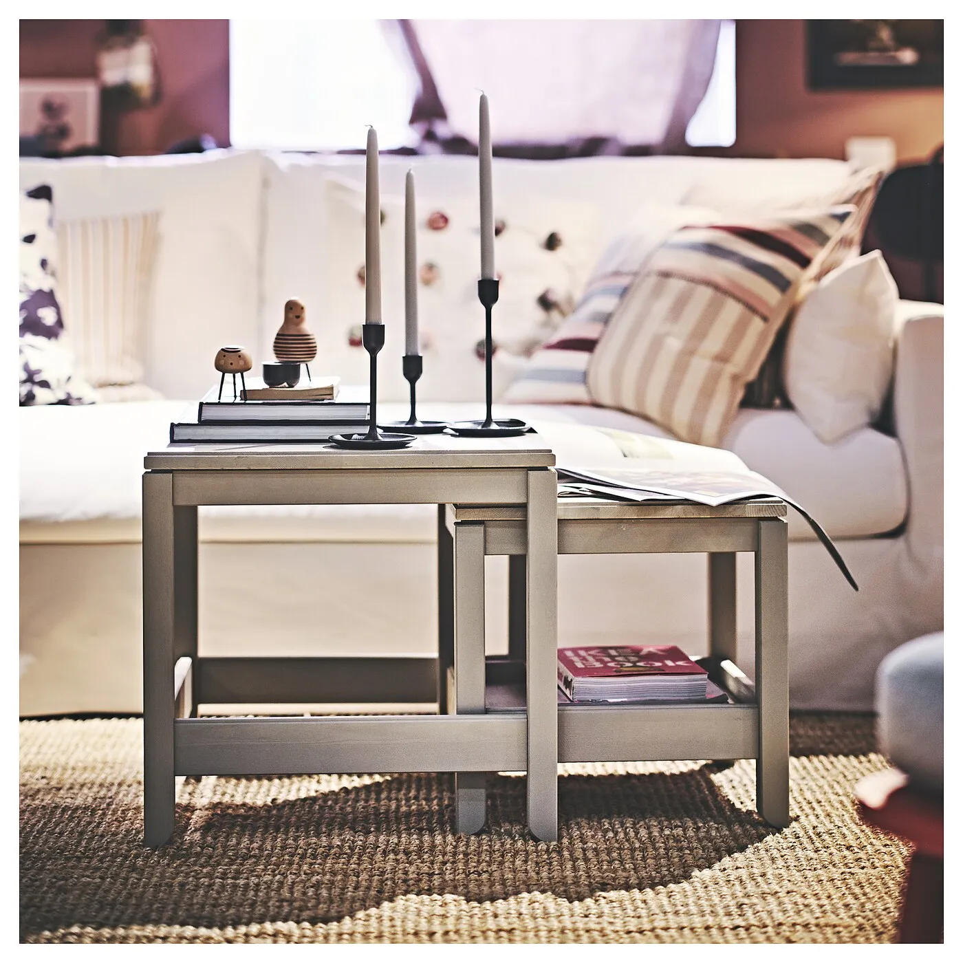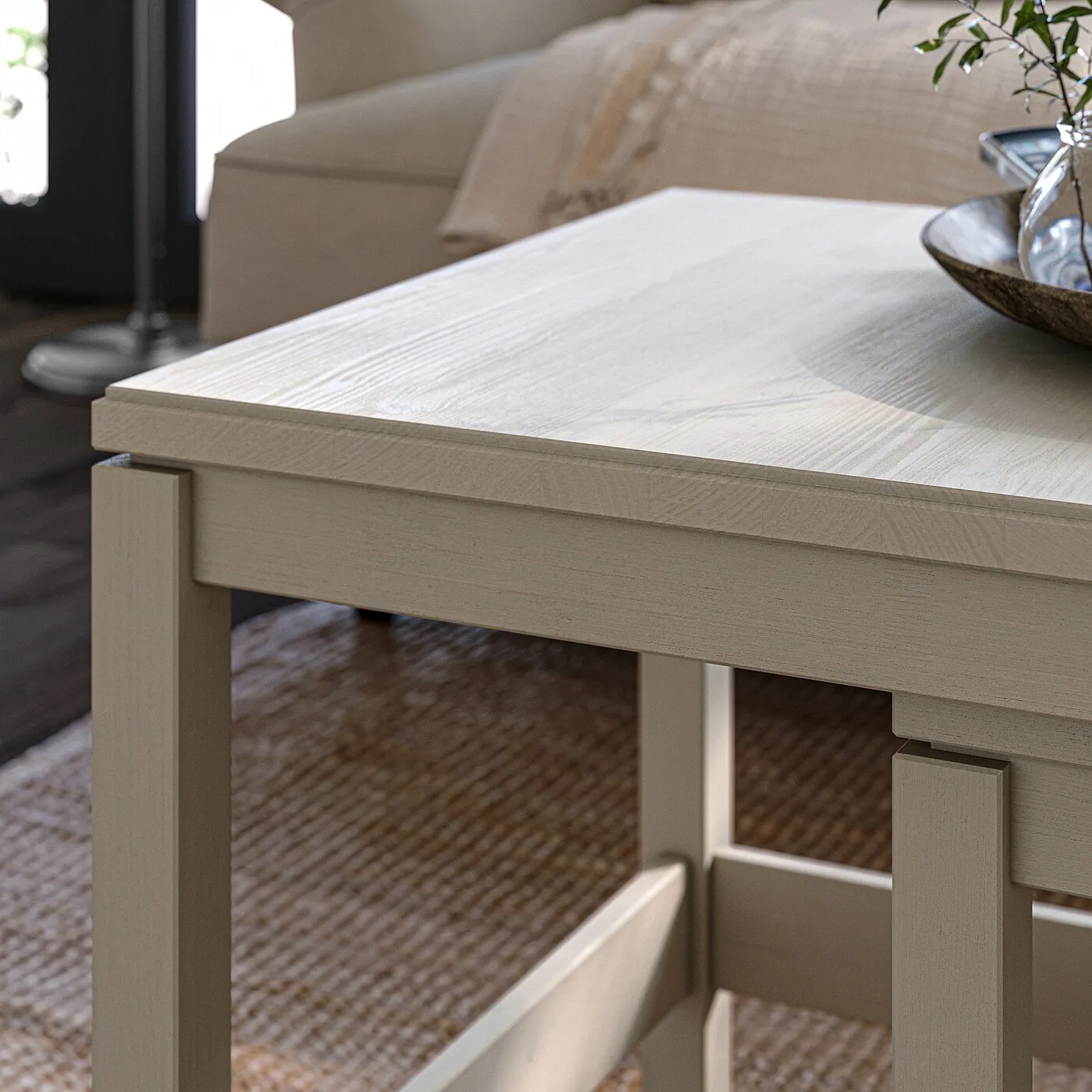 Мастерски выполненные детали из массива сосны с отшлифованной поверхностью добавят уют и шарм вашему дому. Эти приставные столики могут использоваться по-разному: отдельно или как единое целое, экономя пространство.