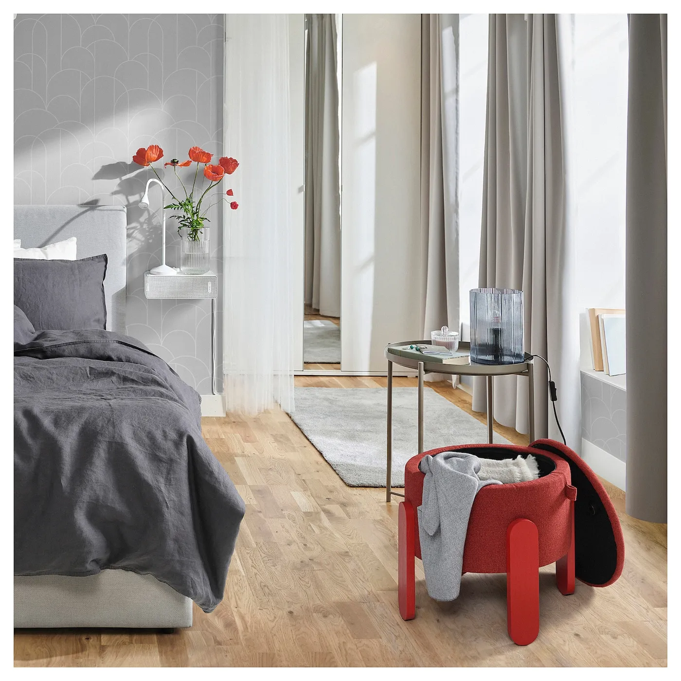 Пуф FÖRLUNDA компактный, его можно складывать, плюс он имеет удобное место для хранения под мягким сидением. Отлично подойдет для прихожей, чтобы сидеть при завязывании обуви, или в гостиной как дополнительное место для сидения.