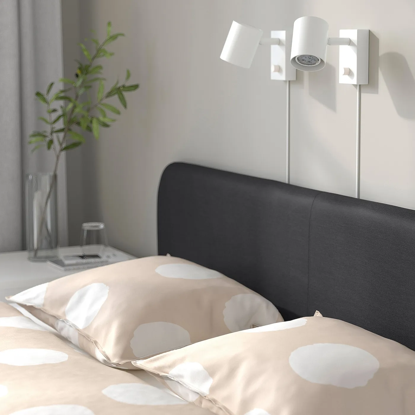 Кровать SLATTUM сочетает в себе мягкую обивку и удобную изголовье, гармонируя с элегантными и простыми линиями. Легко понравиться — и удобно для транспортировки, ведь вся конструкция упакована в одну коробку.