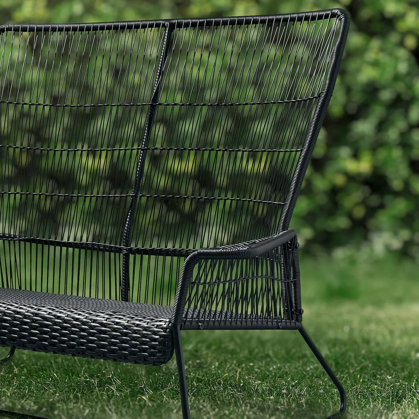 Проводите время на свежем воздухе круглый год. Этот уютный черный диван рассчитан на двоих и выполнен из плетеного пластиката — материала, который прост в уходе и позволяет больше времени проводить с семьей и друзьями.