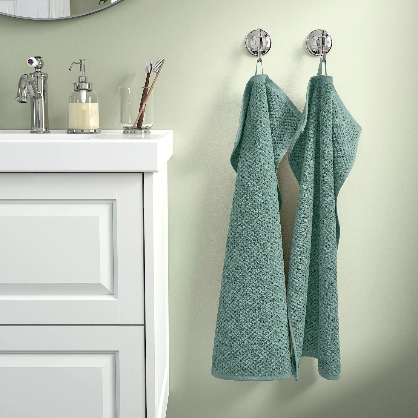 Мягкое и пушистое полотенце GULVIAL в бирюзовом цвете, средней плотности (500 г/м²), выполнено из 100% хлопка, что делает его прочным, хорошо впитывающим и идеальным для ежедневного использования.