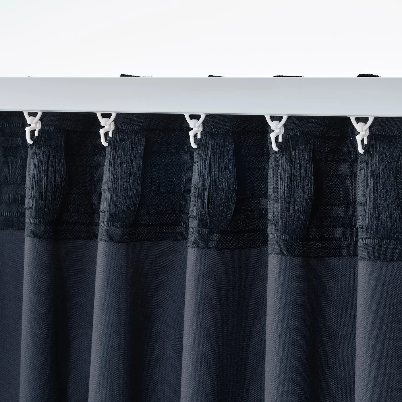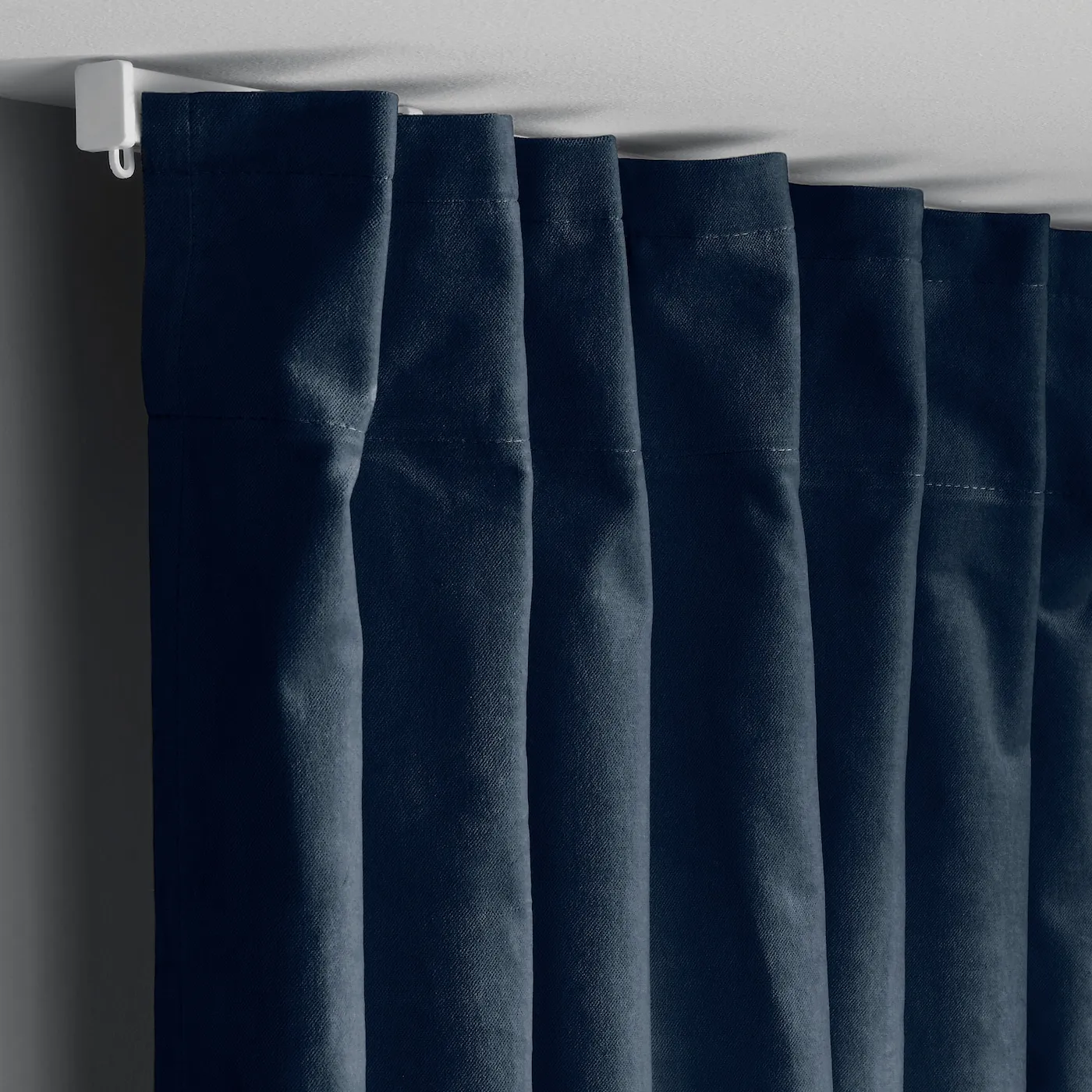 Шторы SANELA выполнены из чистого хлопкового вельвета, что придаёт глубину насыщенному темно-синему цвету. Элегантные складки красиво падают, а ткань создаёт эффект затемнения комнаты. Многовариантная шторная лента позволяет по-разному вешать шторы.