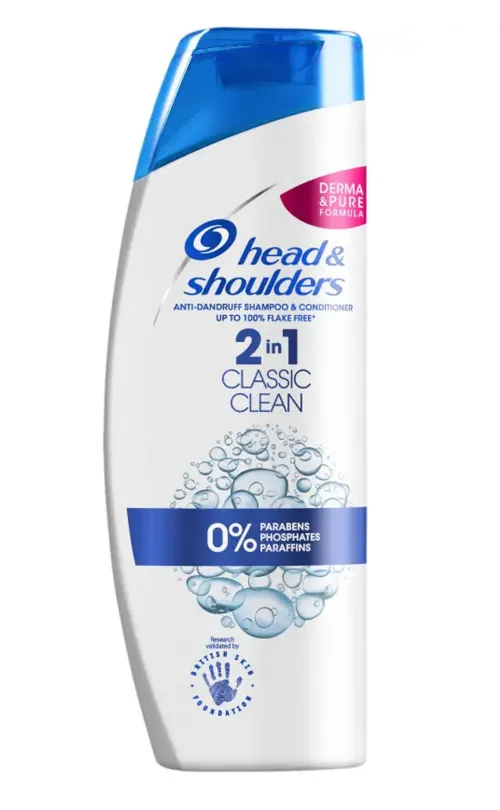Шампунь против перхоти Head & Shoulders Classic Clean 2in1 + Кондиционер борется с перхотью, балансирует и лечит волосы и кожу головы. Новый состав 3 Action очищает, защищает и увлажняет волосы. Классический аромат. Размер упаковки 450 мл.Ингредиенты:Вода, лауретсульфат натрия, лаурилсульфат натрия, хлорид натрия, ксиленсульфонат натрия, кокамидопропилбетаин, дистеарат гликоля, цитрат натрия, отдушка, пироктоноламин, диметиконол, бензоат натрия, диметикон, лимонная кислота, гуаргидроксипроп, линалоол, тетранатрий эдта, гидроксид натрия , Trideceth-10, салицилат натрия, поликватерниум-76, триэтиленгликоль, пропиленгликоль, бензиловый спирт, CI 42090, CI 17200.