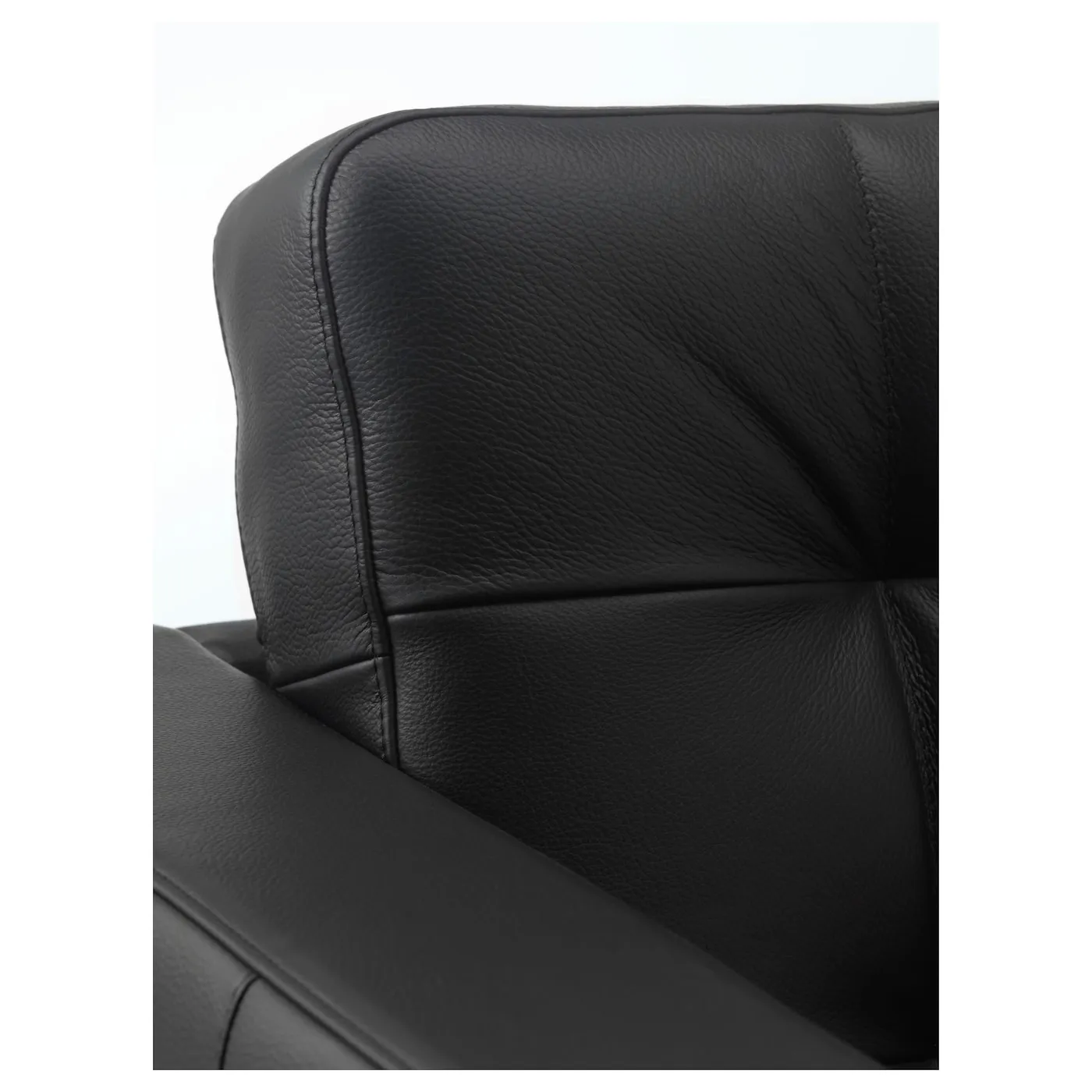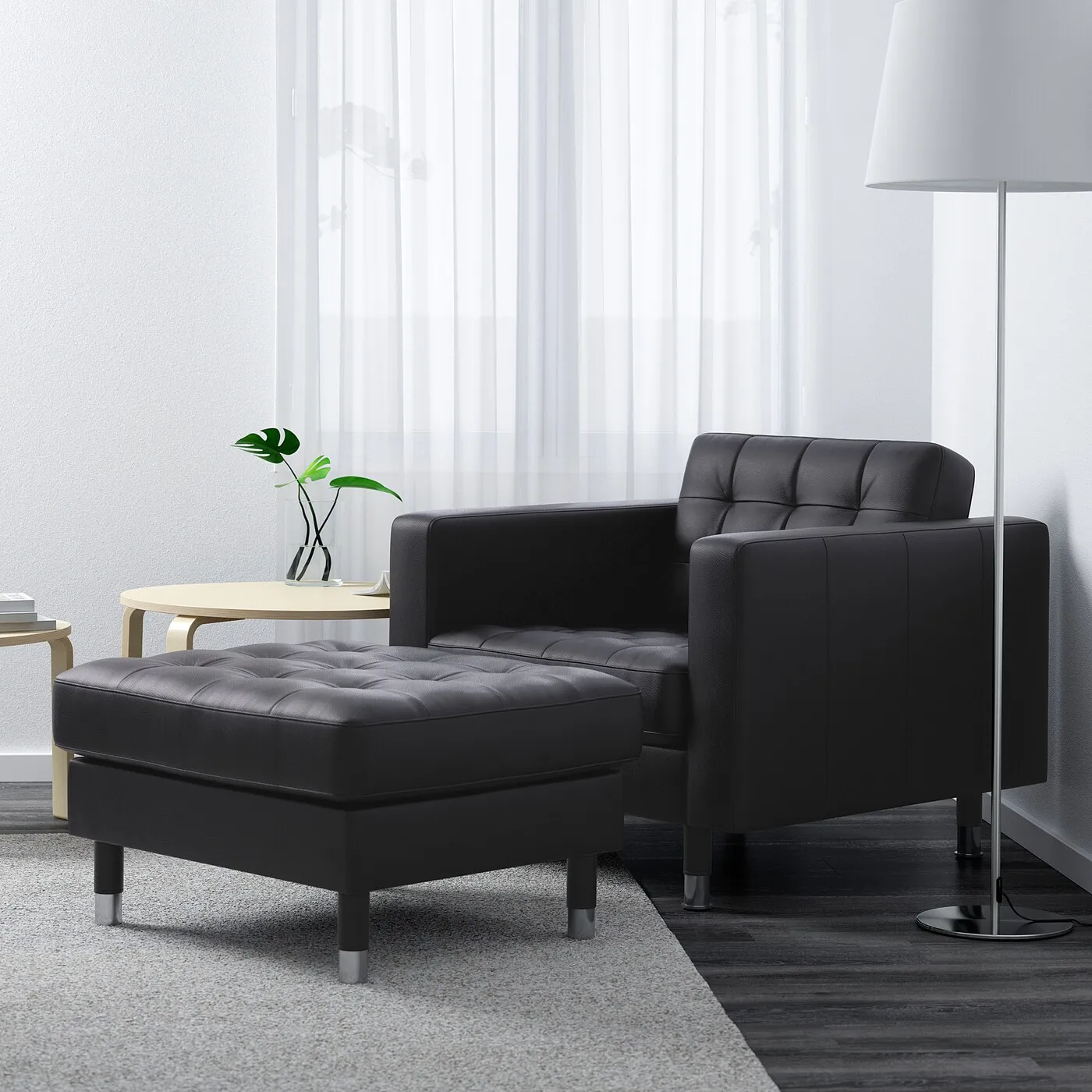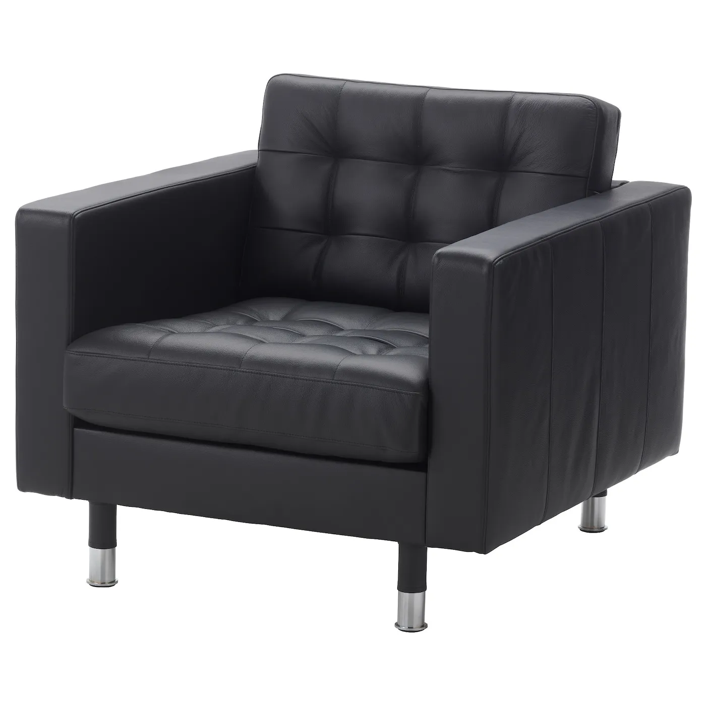 Сиденье, спинка и внутренняя часть подлокотников покрыты кожей GRANN — мягкой, гладкой и прочной, с естественными вариациями. Остальные поверхности выполнены из ткани BOMSTAD с покрытием.